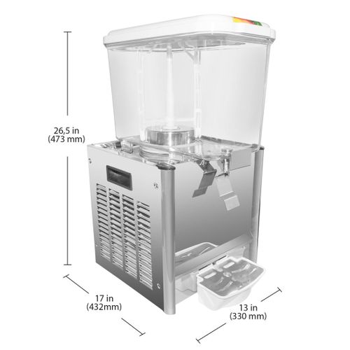 Key Features: Commercial Cold Beverage Dispenser – 9.5 Gallon Juice Dispenser Machine for Cold Drink, 1 Tap Tank 110/220V,60/50Hz, US plug or EU plug,300W for refrigeration,US plug,2*18L tanks Delivery by Express to buyer’s address, Temp cold: +6~ +12ºC, low noise & cooling fast Single Compressor, filled in R134a, welding by copper tube, food grade material Available to use in bars, cafes, milk tea stores, restaurants, hotels, bakeries, ice-cream stores, and so on NW:30KGS, All the parts are adopted under food grade material, machine size:18.11″X17.52″x27.55″