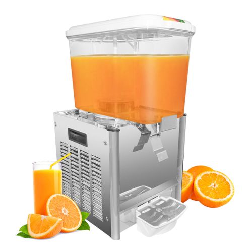Commercial Cold Beverage Dispenser – 9.5 Gallon Juice Dispenser Machine for Cold Drink, 1 Tap Tank COOLING TEMPERATURE CONTROL – SUNCOO Juice Dispenser has an efficient intelligent cooling system: When the ambient temperature is 20-30°C, the cooling temperature range is 7-12°C. With the temperature control, you can use this commercial drink dispenser in summer. STEADY STAINLESS STEEL MATERIAL – This commercial juice dispenser machine is made from 304 stainless steel, which makes the juice dispenser durable, efficient, and temperature-resistant. Its unique design and stainless steel body allow easier cleaning and less complicated maintenance, the stainless steel spigot is good for preventing leaking. LARGE CAPACITY TANK – Made of premium food-grade PVC material, the cold beverage juice dispenser is safe and non-toxic to load various beverage juice with a long preservation time. With the scale on the tank body, the beverage dispenser can contain and mix up to 4.75 Gallons per tank (9.5 gallon total) of cold juice, lemonade, soy milk, and other drinks. MULTIPLE USE – The multifunctional commercial juice dispenser is convenient for many places, such as restaurants, stores, hotels, malls, schools, gym clubs for containing different kinds of drinks. A Juice dispenser for restaurants makes it more attractive and useful. POWERFUL PERFORMANCE – With a technological compressor, condenser, and evaporator, the refrigerated juice dispenser shows high quality with making cold beverage juice. The mixing leaf design can reduce sediment and stir fully the juice and drinks. Kuppet Commercial Beverage/Juice/Drink Dispenser,9.5 Gallon 1 Tanks, Fruit Ice Tea Cold Drink with Spigot, Restaurant Buffet Food Service Catering Beverage Dispensers, Cold 280W