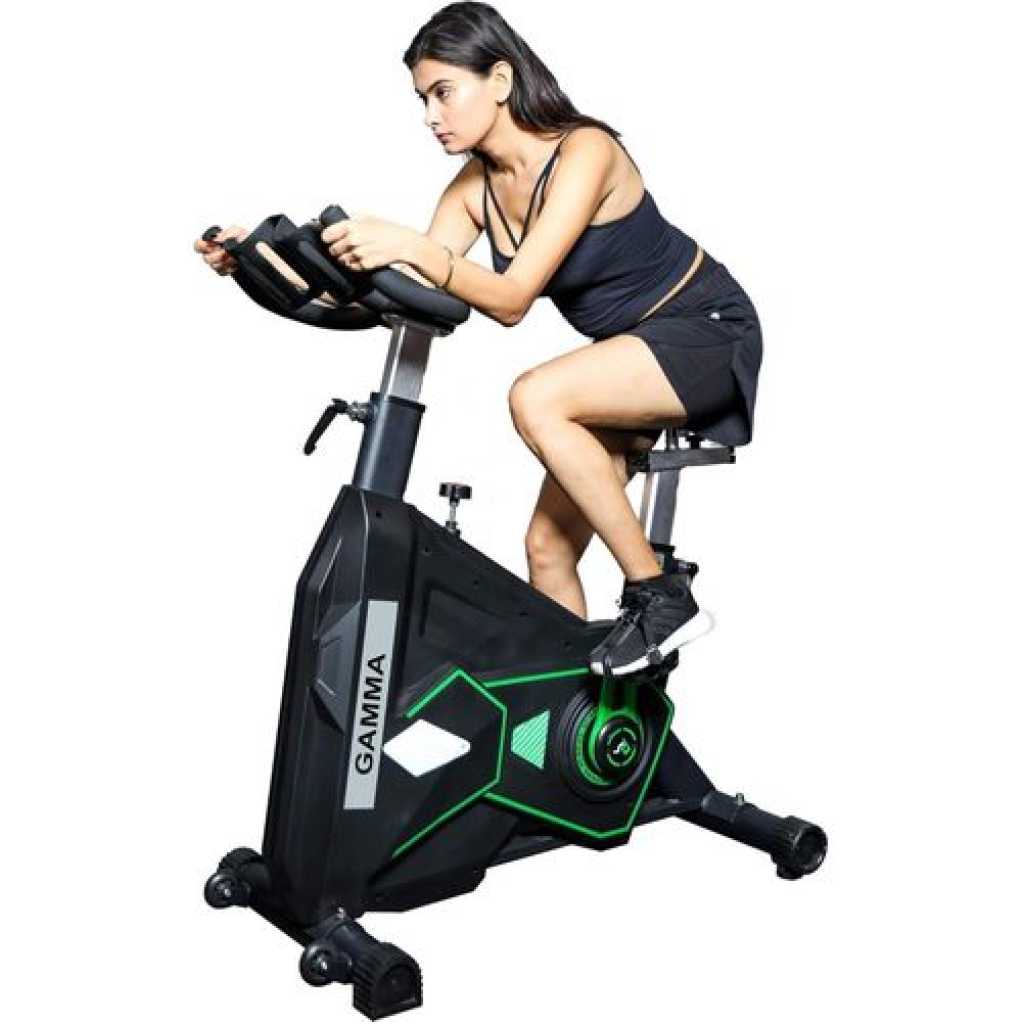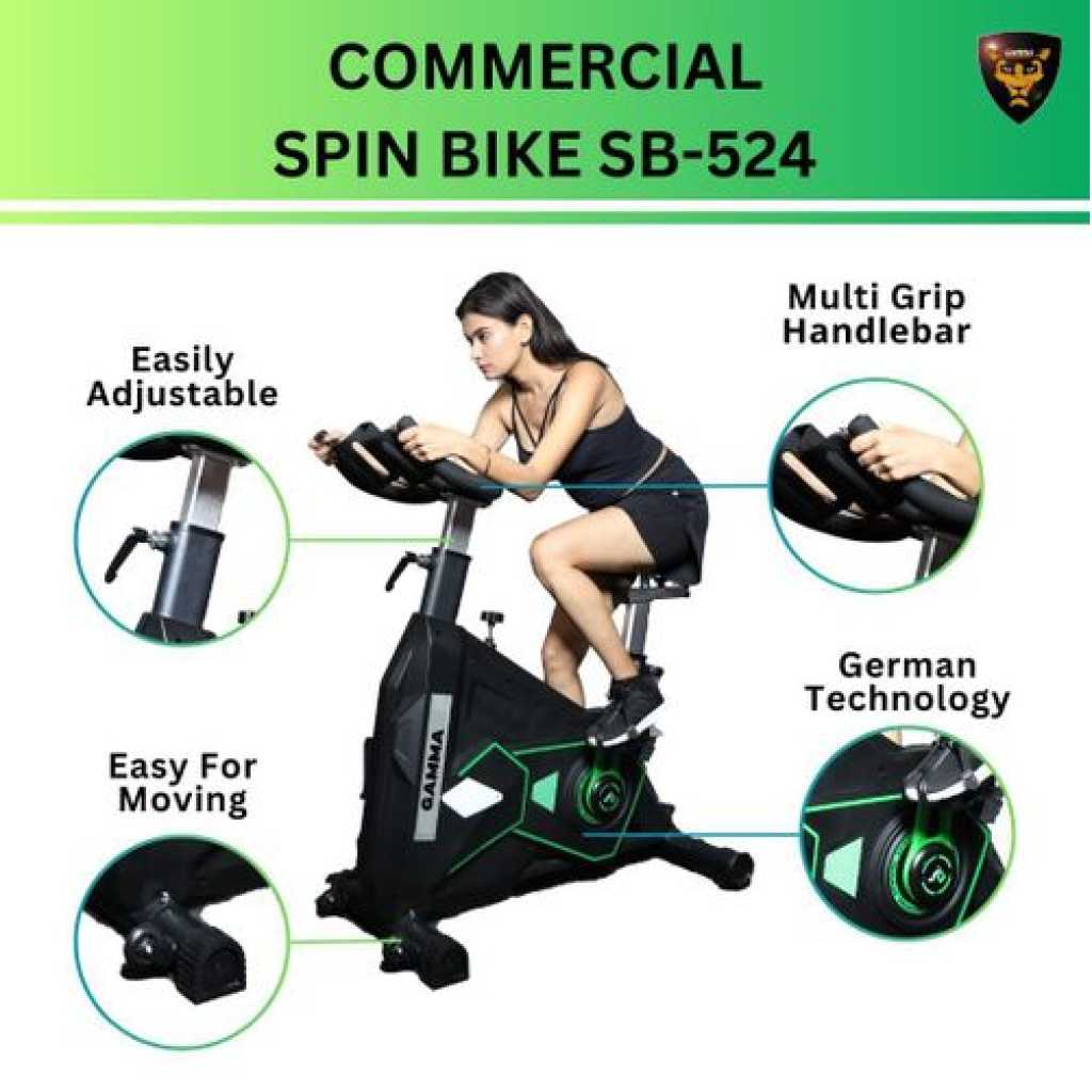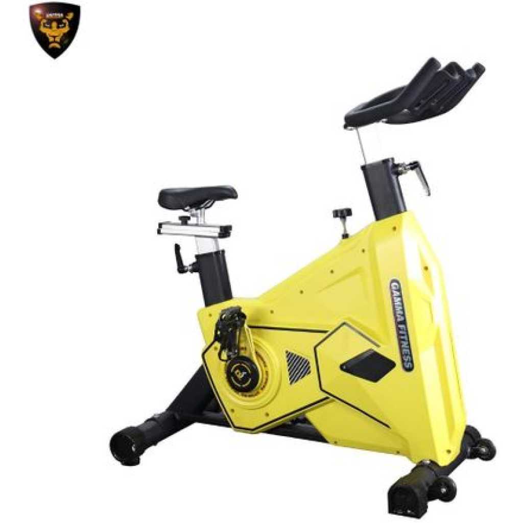 Take Your Fitness Journey to the Next Level with the Gamma Fitness SB-524 Spin Bike! Introducing GAMMA FITNESS Heavy Duty Spin Bike: The Perfect Indoor Workout Companion!!! The GAMMA FITNESS Heavy Duty Spin Bike is a force to be reckoned with. Engineered with uncompromising quality and designed to withstand the most rigorous workouts, this spin bike is a must-have for fitness enthusiasts and commercial gyms alike. Unrivaled Quality and Durability: It is a top-tier choice for fitness enthusiasts and commercial gyms. Crafted with an unwavering commitment to quality, it excels in performance and durability, making it essential for rigorous workouts. Robust Construction for Unmatched Strength: It stands out with its robust construction. It was designed with robust materials to easily endure the most demanding exercises, guaranteeing athletes and fitness fanatics longevity, dependability, and unchanging performance. Personalize Your Experience: Vibrant Color Options: Express your style with the GAMMA FITNESS Spin Bike. Choose from vibrant yellow or sleek black options to create a personalized workout space that reflects your preferences. Transform Any Space: Dynamic Indoor Workouts: Turn any area into a dedicated workout zone with the versatile GAMMA FITNESS Spin Bike. Enjoy the convenience of dynamic indoor workouts, adapting to your surroundings for a fulfilling fitness experience. Experience Unparalleled Stability: It offers exceptional stability and support during intense training sessions. Feel confident as you push your limits, knowing that this spin bike provides the stability you need for a secure workout. Choose GAMMA FITNESS for Unmatched Performance and Quality! Elevate Your Fitness Experience Today! Unrivaled Performance & Durability Designed for heavy commercial use, the GAMMA FITNESS 28 Kgs Flywheel Spin Bike sets a new standard in performance and durability. A game-changer for commercial gyms and training centers, it delivers top-notch quality and reliability. Smooth and Efficient Belt Transmission System The two-way belt transmission and double chip resistance system provide a smooth and efficient cycling motion. Customize resistance to achieve your fitness goals. The pull resistance way ensures a safe emergency brake during intense workouts. Optimal Machine Weight / User Weight The GAMMA FITNESS Spin Bike accommodates up to 150 Kgs, ensuring stability for diverse users. Weighing 70 Kg, it provides exceptional strength and security during intense workouts, allowing users to focus on training. Choose Your Style: Vibrant or Sleek Personalize your fitness facility with the GAMMA FITNESS Spin Bike. Available in vibrant yellow or sleek black, select the color that matches your gym’s aesthetic and creates an inviting workout environment.