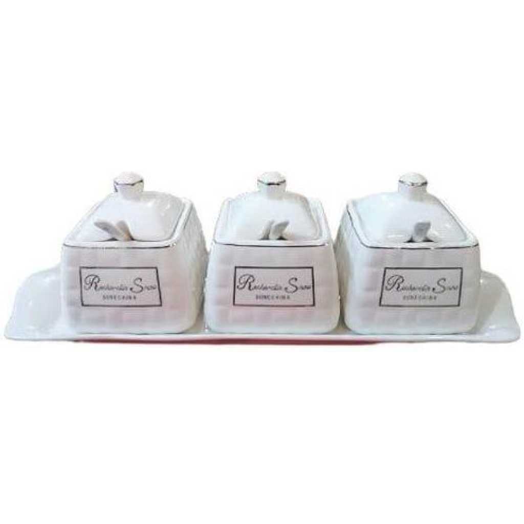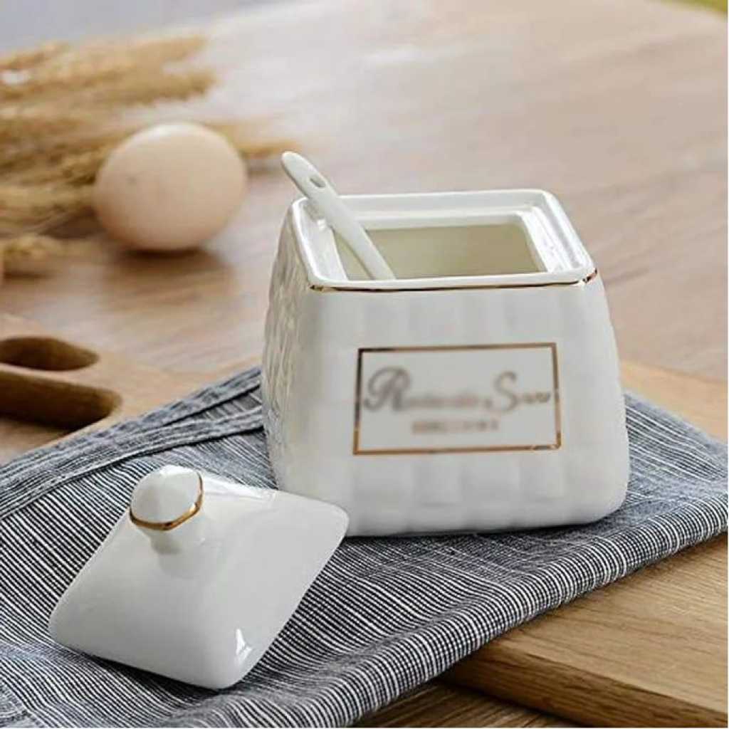 Key Features: Condiment Pots Spice Seasoning Container Seasoning Box Bottle Salt Sauce Jars Ceramic Household Seasoning Jar Oil Salt Sugar Bowl Cooking Box- White These jars are also ideal for storing and organizing artwork and craft supplies rubber bands screws paper clips and other small necessities in the kitchen or home office. Easy to clean and keep clean daily enamel glaze bright exquisite easy to wash after use in the kitchen good thermal stability slow heat transfer it is better than glassware. Porcelain has less pores and low water absorption. After sealing the mouth it can prevent evaporation. Does not contain substances that are harmful to the human body. It is easy to clean very practical beautiful appearance. Elegant design smooth appearance exquisite kitchen tools comfortable feeling and design suitable for promotional advertising opening ceremony gifts and so on