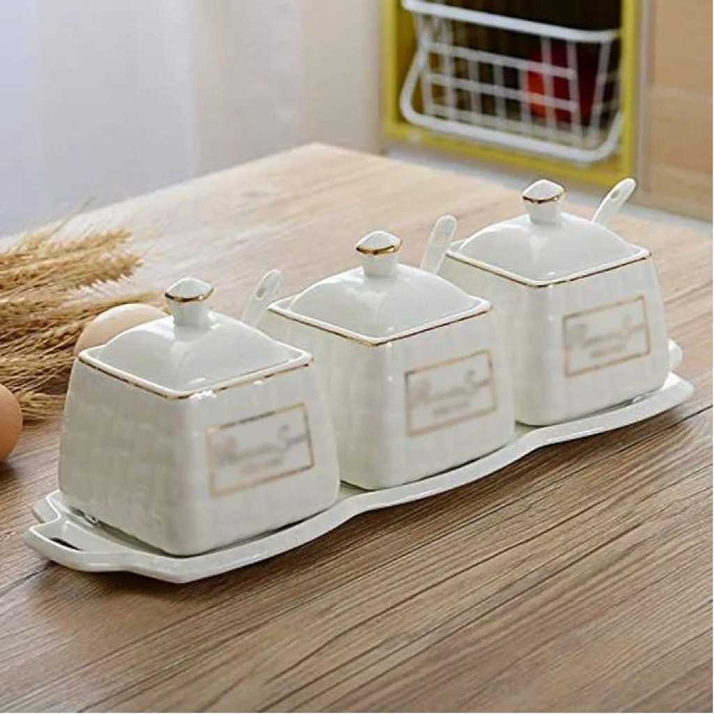 Condiment Pots Spice Seasoning Container Seasoning Box Bottle Salt Sauce Jars Ceramic Household Seasoning Jar Oil Salt Sugar Bowl Cooking Box- White Seasoning boxes, seasoning cans. We have a variety of seasoning boxes in our shop. We have all kinds of seasoning boxes to meet all your needs. With this kitchen storage box, you will say goodbye to the messy kitchen and save more space. You can put salt, soy sauce and vinegar down. All the condiment boxes are full of large capacity, specially designed for home kitchens. Bottles and jars of delicious food come at your fingertips. They are placed in an orderly way, making it easier to take them. You can also take them at any time when you are in a panic. The product quality is food grade, safe and harmless, and more safe to eat. It can also be used as a gift for your beloved family and friends. Thank you for visiting our store! Your praise is our greatest support and encouragement, and will also be our driving force for continuous progress! I hope you enjoy your shopping! Popular element: Court style Applicable space: Kitchen Style: European Material: Ceramic Style: covered with hole cover Number: 3 pcs Size: 36.5*12cm