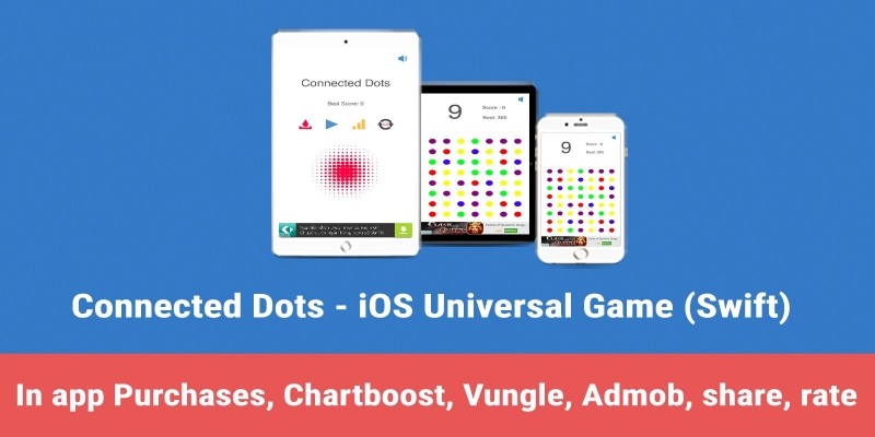 Connected Dots - iOS Swift Game Source Code. Connected Dots - iOS Universal Game is puzzle game. You have 60 seconds to match dots with the same colors, ...