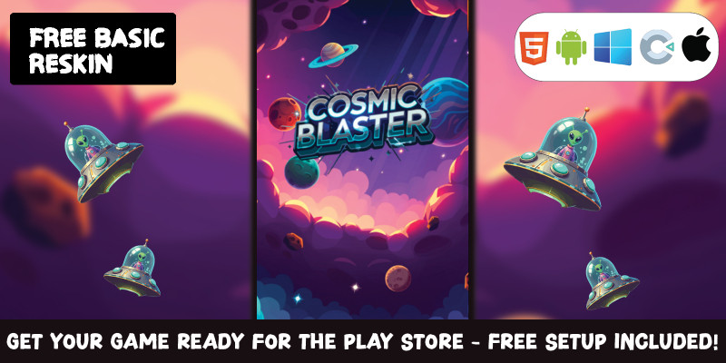 Cosmic Blaster- Construct 3 Game HTML5. Embark on an interstellar mission in Cosmic Blaster, a fast-paced space shooter.