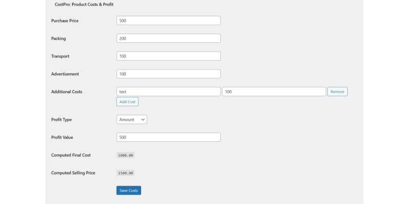 CostPro – Product Cost Calculator. Calculate product costs, apply profit margins, and integrate with WooCommerce for seamless price updates and customizable cost hea