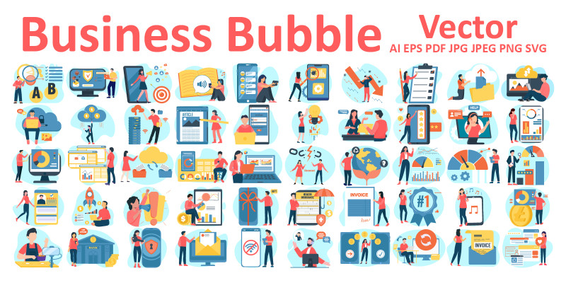 Creative Business Bubbles Illustrations Pack. Explore business bubbles, their formation, rapid growth, crashes, and market impacts to better navigate economic uncertainty.