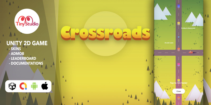 Crossroads - Unity project. Press to increase speed of a car. Avoid other cars and collect coins and open new skins. It’s an endless type of game.