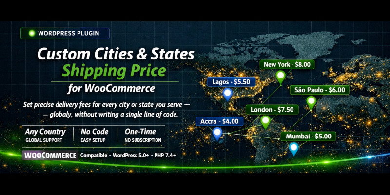 Custom Cities Shipping Price for WooCommerce. Custom Cities & States Shipping Price for WooCommerce lets you assign individual delivery prices to every city in every state,