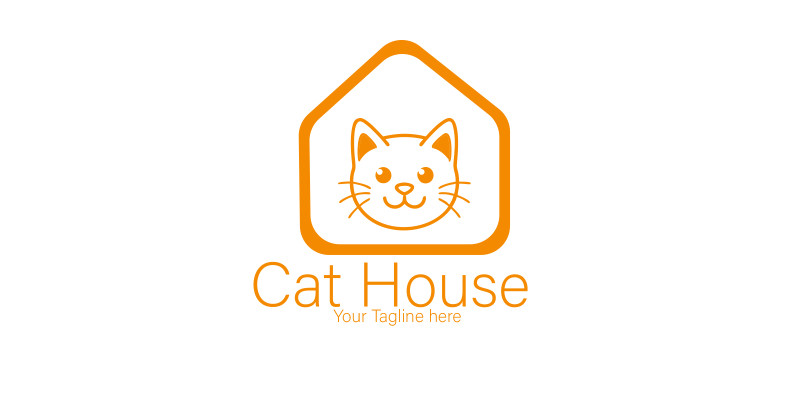 Cute Cat House Logo Design. : A charming and simple logo featuring a friendly cat face inside a house outline,