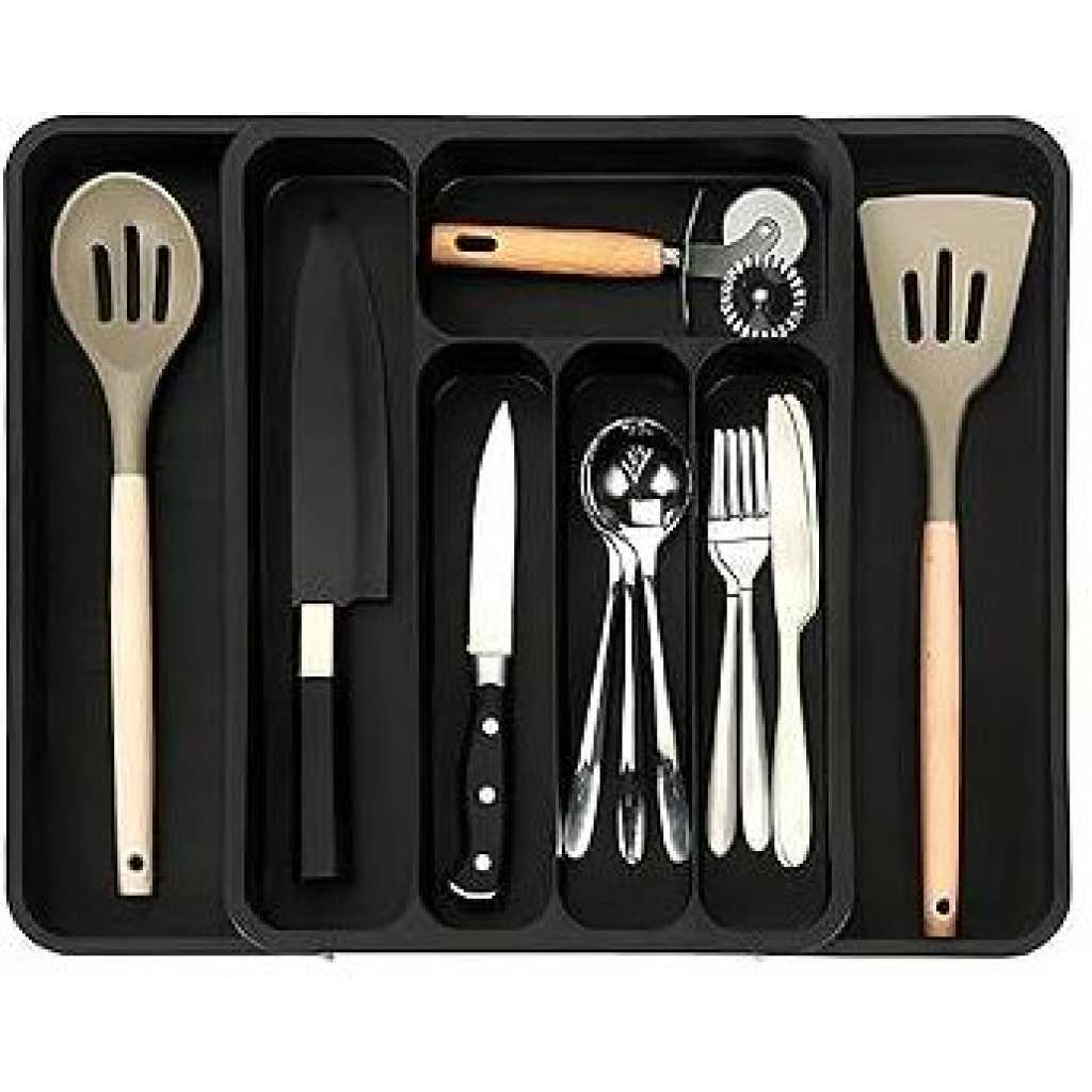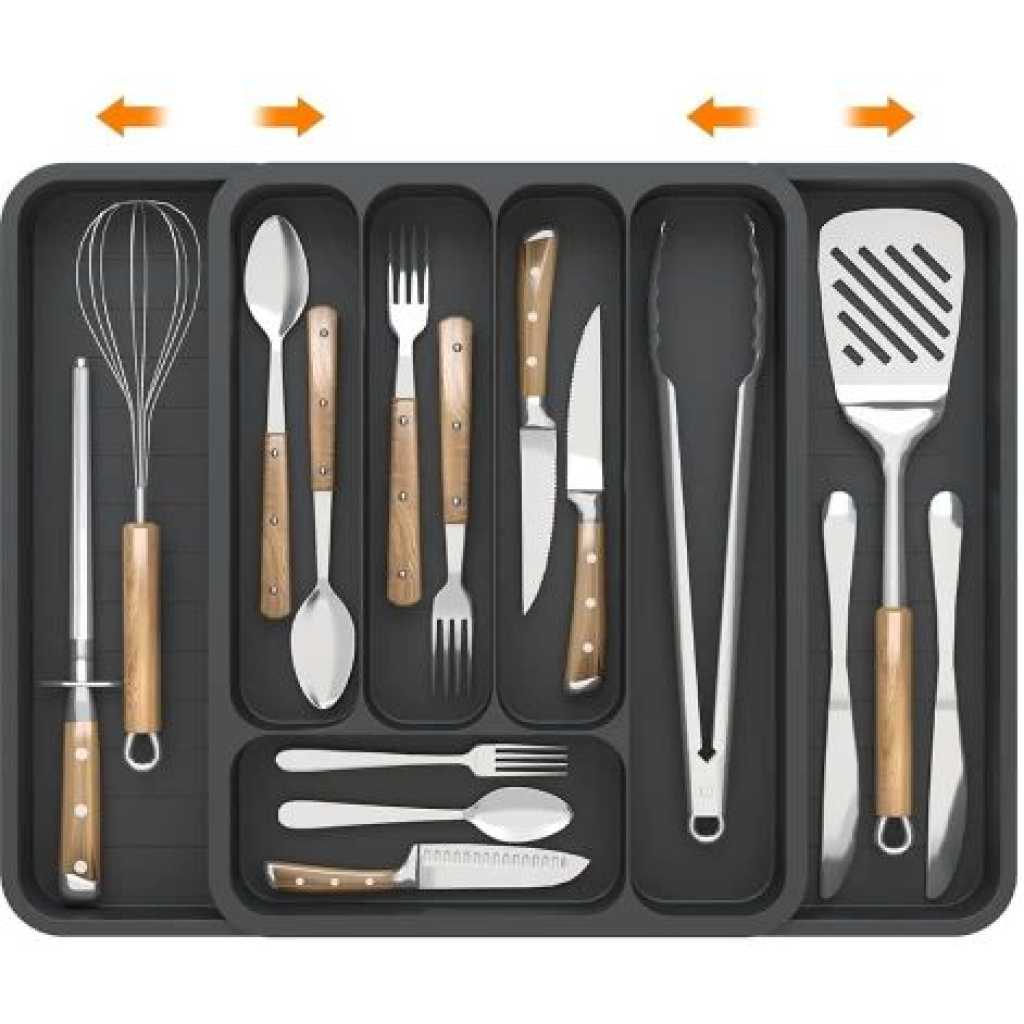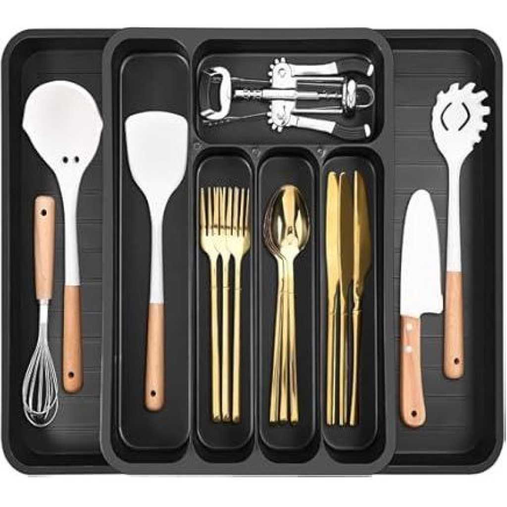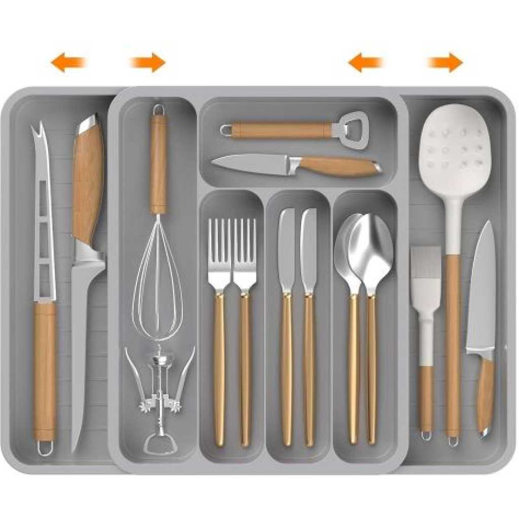 Key Features: 【6 Dedicated Slots】 With six thoughtfully designed slots, this kitchen utensil organizer offers ample space to neatly arrange a variety of kitchen tools, keeping your culinary essentials easily accessible and well-organized 【Non-Slip Design】 Our silverware drawer organizer tray features non-slip surfaces on each compartment, ensuring your utensils stay securely in place and protecting your silverware from any potential damage caused by shifting within the drawer 【High-Quality and Easy to Clean】 Crafted from premium materials, our kitchen drawer organizer inserts are built to withstand daily use, ensuring long-lasting durability. The rounded corners allow you to reach every nook and cranny with ease, making cleaning a hassle-free experience