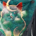 Dámský pěkný, tlustý, měkký šátek s potiskem chrání krk proti chladu a přináší teplo, motiv kočky a měsíce