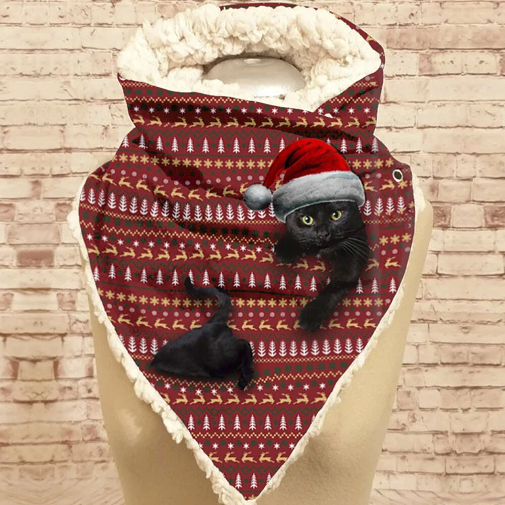 Pouze US$15.83, nakupujte Dámský roztomilý kartáček 3D černá kočka Fstive vánoční atmosféra proužek vzor teplý krční ochranný šátek na Banggood.com. Nakupujte módní scarf & shawl & square online.