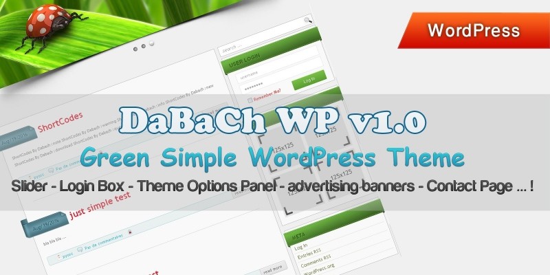 DaBaCh WP - Green Simple WordPress Theme. DaBaCh WP is a clean and simple green WordPress theme.