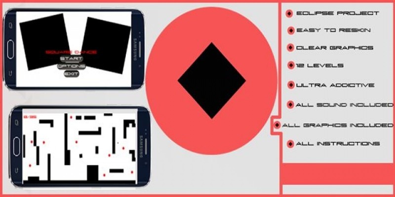 Dance Square - Android App Source Code. Arcade game with Flappy Bird game mechanics.