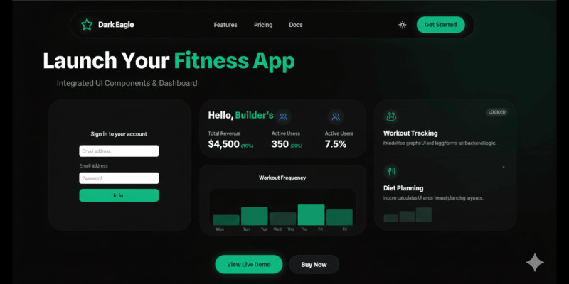 Dark Eagle - Next.js 16 SaaS Starter Kit. Launch fast with this premium Next.js 16 & Tailwind CSS SaaS starter. Features dark mode, glassmorphism, and a dashboard UI