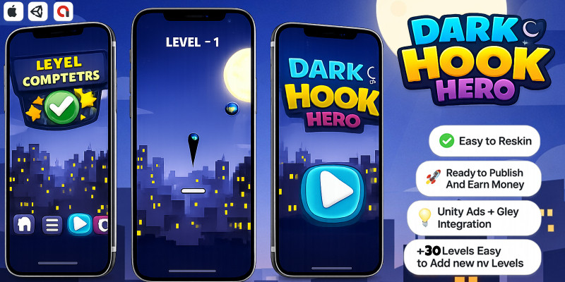 Dark Hook Hero - Hyper Casual Mobile Game. Dark Hook Hero Unity Game Source Code! Perfect for mobile, this game is optimized for Android & iOS. Built in Unity, easyto re