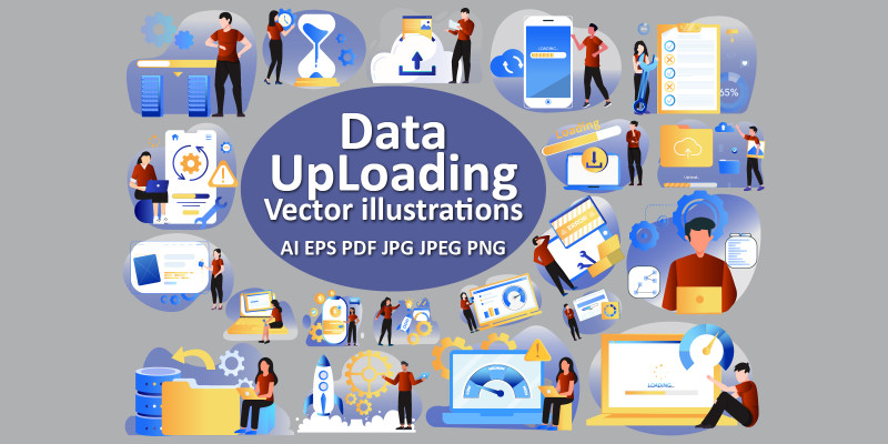 Data Uploading Vector Illuatrations Pack.
