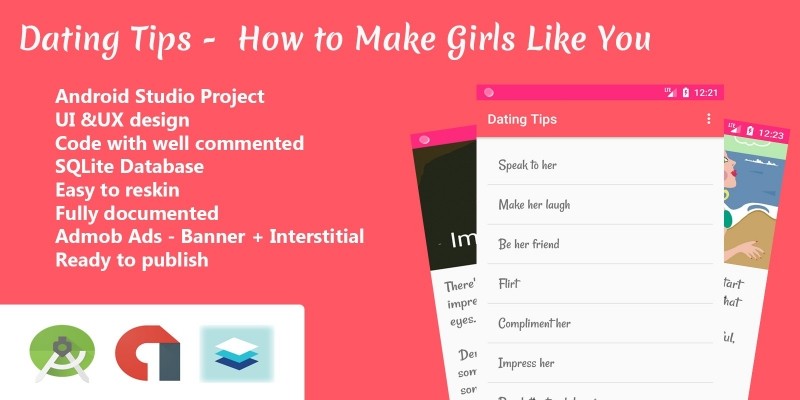 Dating Tips - Android App Source Code. You wanna ned to make tips app with Health, dating, food.etc That template is perfect for you.