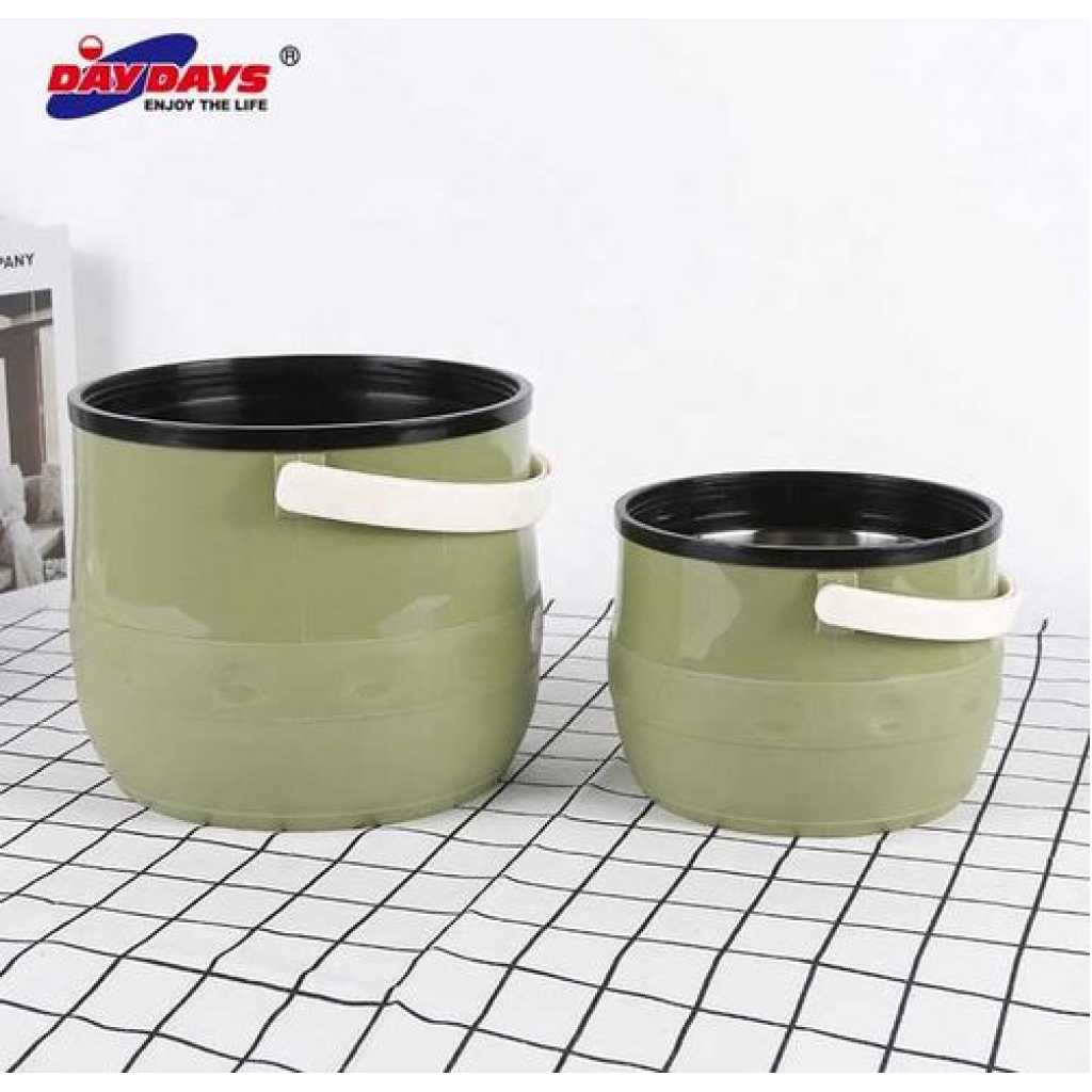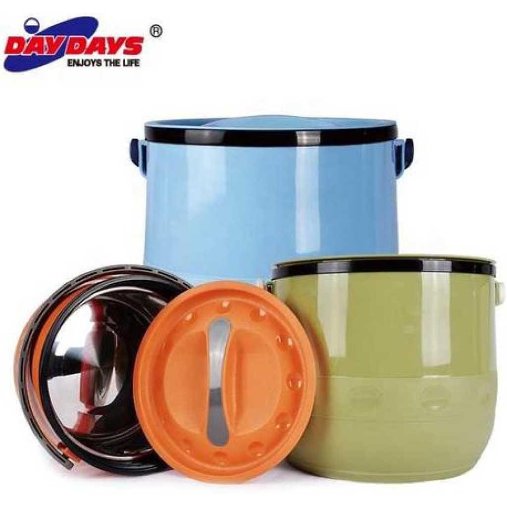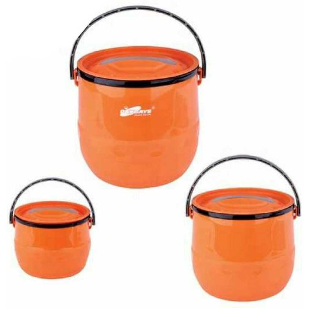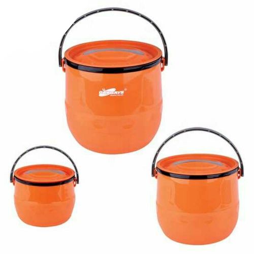 Daydays 3 Pc Insulated Lunch Box Food Warmer Jar Storage Container. The three hot pots within this set all exhibit a sleek and contemporary look, ideal for home-cooked family meals or special occasions. These modern casserole pots are innovatively designed with a stainless steel interior surface and a double-walled exterior, allowing superb preservation of food’s initial temperature when placed in the pots. The casserole pots are made from 100% food-grade materials meaning food is always served fresh-tasting and safely. Their outer casing is incredibly easy to wipe clean and comes in two, dual-tone color options – white and silver or black and silver – so you can select the best match to beautifully complement your kitchen. Round Casserole is not oven safe and is not intended to be used for cooking. Fiesta hot pots are double-walled, with a stainless-steel inner surface to keep food hot and fresh-tasting for hours. Featuring a smart dual-tone outer finish, these insulated casseroles are simple to use, and elegantly designed to take center stage at your dining table. Key Features: Daydays 3 Pc Insulated Lunch Box Food Warmer Jar Storage Container. Easy to clean food-safe materials – stainless steel inside and plastic outer insulation. Helps retain the temperature (hot or cold) and nutritional value of food for up to 6 hours. Easy to store. Material of plastic. 3 Piece Casseroles. Capacity : 1.3+3.2+6.8L.