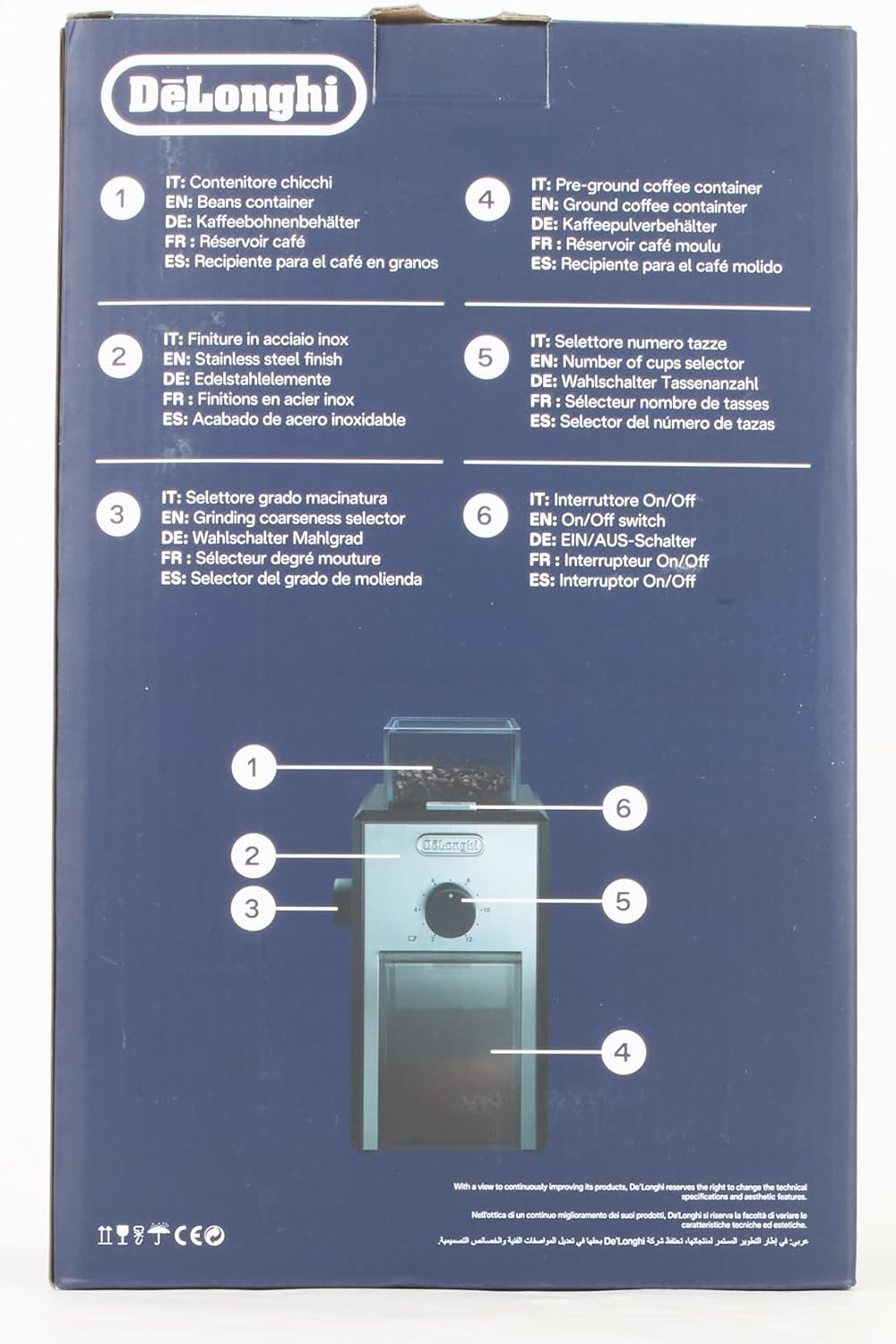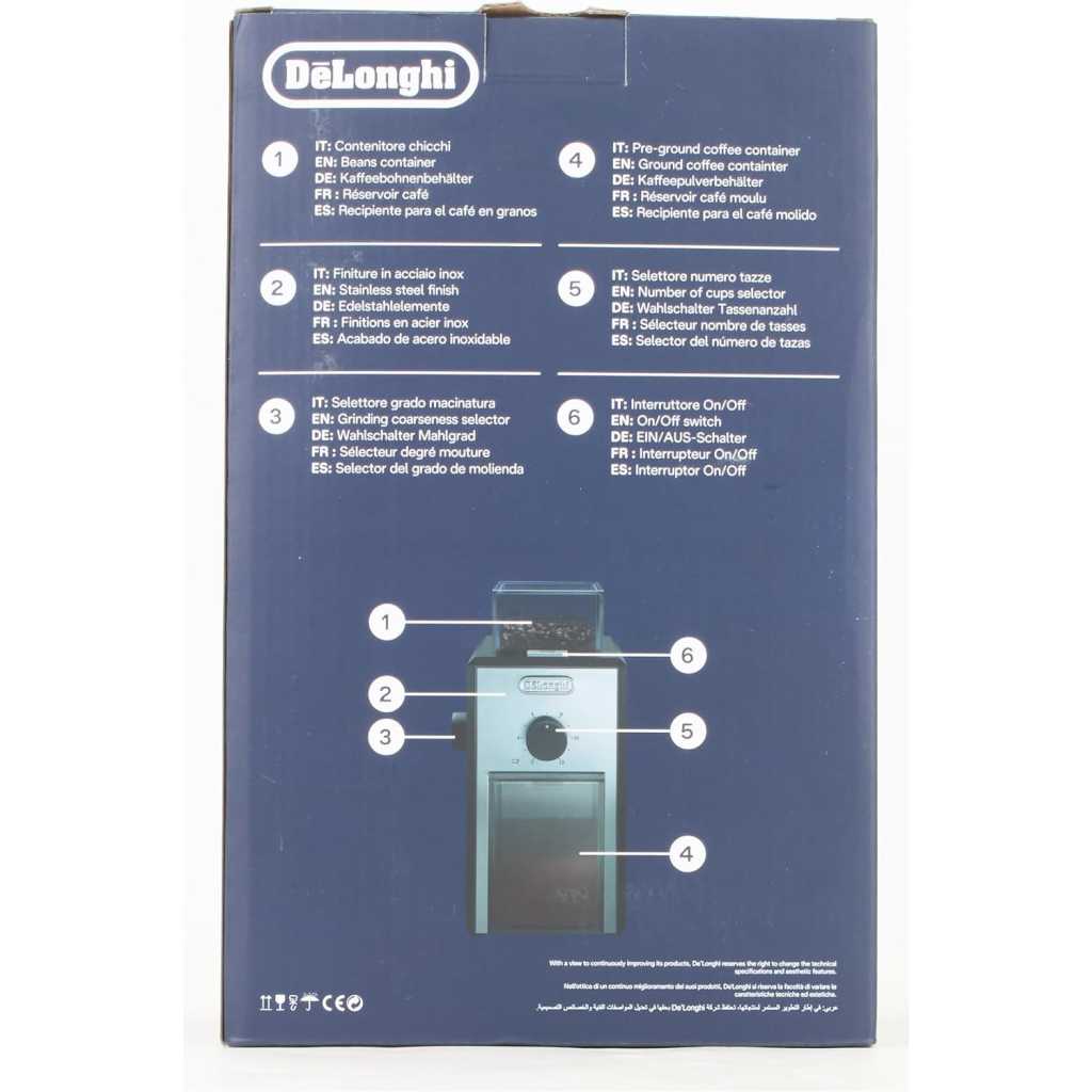 Key Features: Extract the best aroma with 2 grinding wheels Customise grinding with the 16-level adjustable grinding selector Automatic safety shut-off system when containers removed Grind just the coffee you need with the Cup Selector Easy to use with sure grip knobs