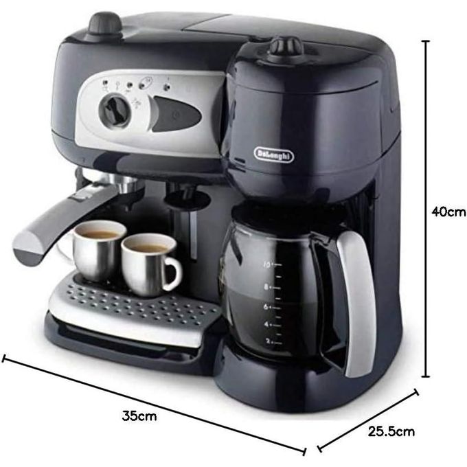 Key Features: Combi Expresso Machine Filter Holder for 1-2 Cups Cappuccino System Auto shut off espresso side Auto Shut off expresso Side Knob for adjusting Steam and Hot Water Removable water containers Flavour Selector (Light to strong) Auto Shut Off (Drip Side) Removable Tray