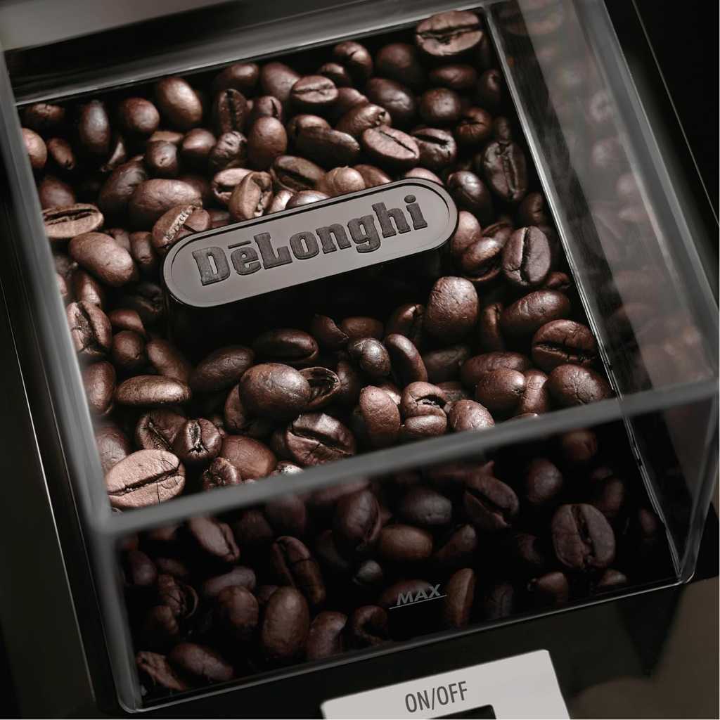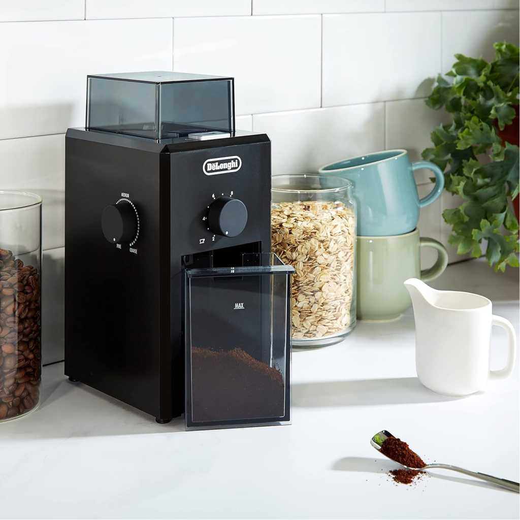 Key Features: De’Longhi Electric Coffee Grinder KG79, 110W, Burr Grinding System, 12 Settings, Stainless Steel Blade, 12 Cup Capacity, 120g Bean Container, Removable Transparent Lid – Black. Consistent Grinding with Burr System – Enjoy uniform coffee grounds with the burr grinding system that preserves aroma and flavor. Perfect for espresso, drip coffee, French press, and more 12 Adjustable Grinding Settings – Choose from 12 precise grind levels for customised fineness, from coarse to fine, ensuring the perfect grind for every brewing method Large Bean Capacity (120g) – Grind up to 120g of coffee beans at once, enough for 12 cups. Ideal for personal use or entertaining guests with freshly ground coffee User-Friendly Design – Features a transparent lid and removable container for easy monitoring and cleaning. Sleek black finish complements any modern kitchen Durable 110W Motor & Stainless-Steel Blade – Powered by a robust 110-watt motor and stainless-steel blade for long-lasting performance and efficient grinding