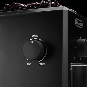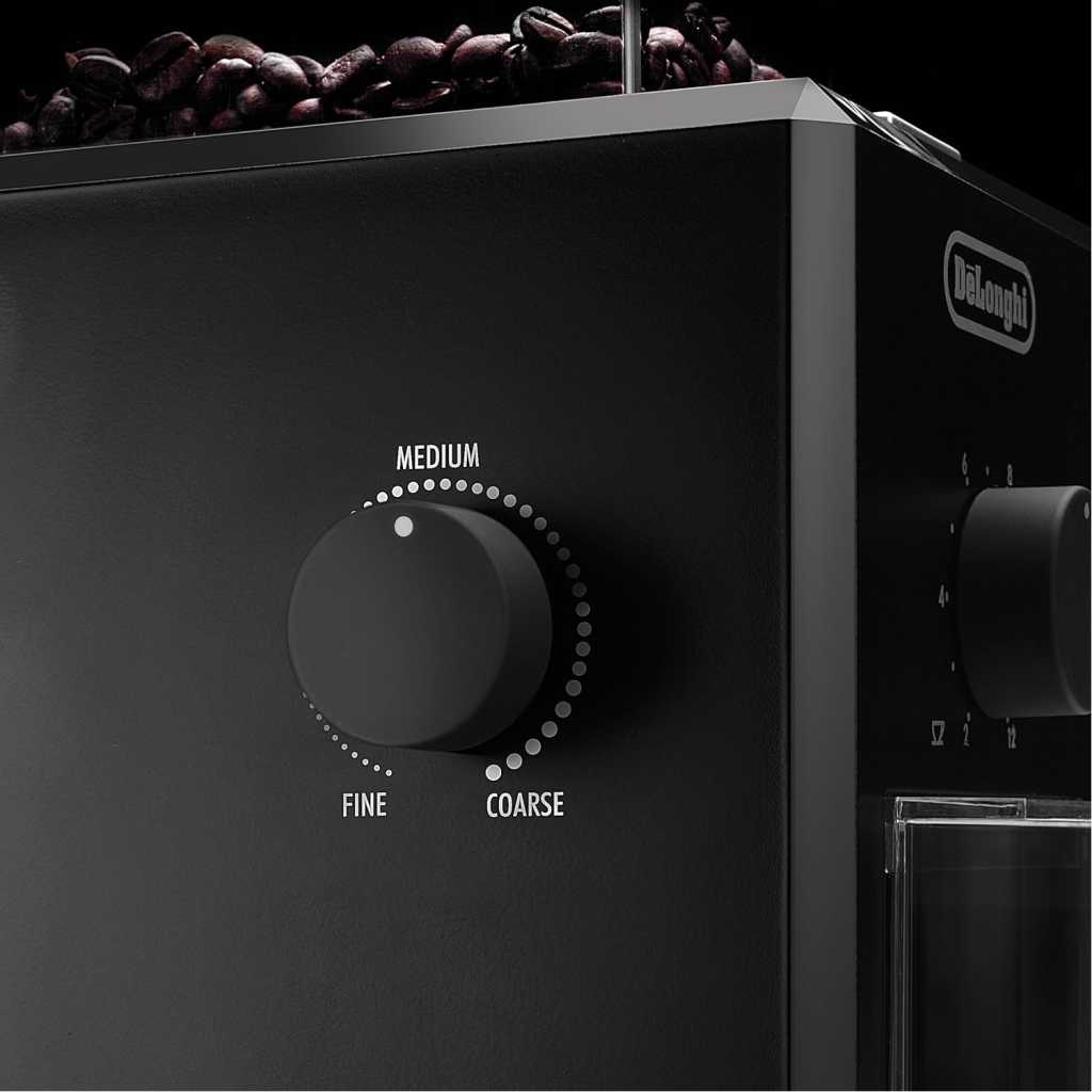 De’Longhi Electric Coffee Grinder KG79, 110W, Burr Grinding System, 12 Settings, Stainless Steel Blade, 12 Cup Capacity, 120g Bean Container, Removable Transparent Lid – Black From the manufacturer
