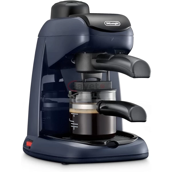 Key Features: De’Longhi Automatic Coffee Machine. Make two espressos simultaneously with the convenient 2-cup adapter. Safe operation with patented steam-pressurized safety cap and heat-resistant 8.5-oz glass carafe. Easily prepares latte and cappuccino with the swivel jet frothier, for perfect drinks every time. Easy to clean with a large removable drip tray. Easy operation with on/off switch and indicator light. Cappuccino system. Automatic coffee circuit rinse. Descaling cycle system. Water level indicator. Water tank capacity 0.3L. 4 Cups of capacity. Power 800 Watts