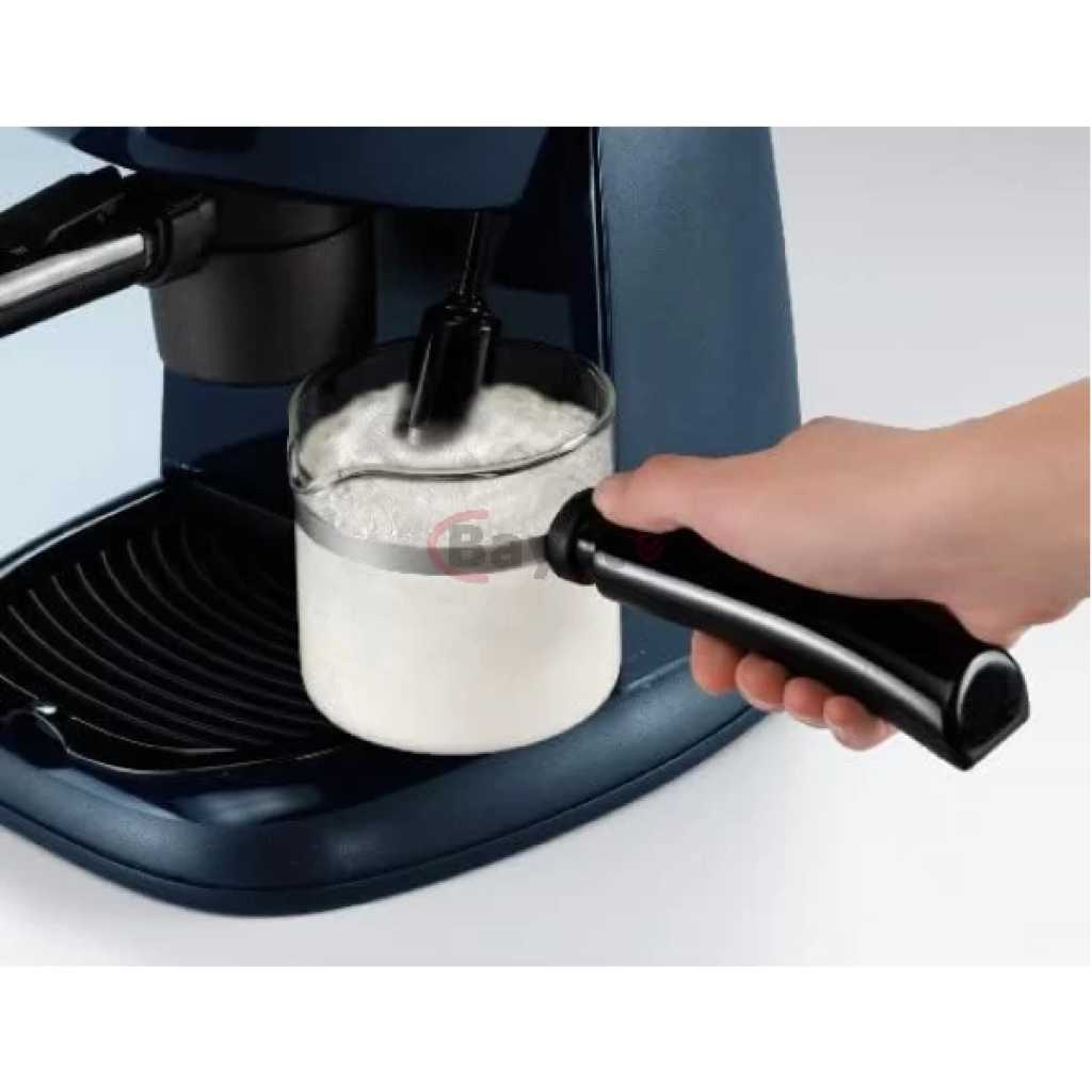De’Longhi Automatic Coffee Machine, Barista Pump Espresso and Cappuccino Maker, Ground Coffee and ESE Pods can be used, Built in Milk Frother for Latte Macchiato and more, EC5. Make two espressos simultaneously with the convenient 2-cup adapter. Safe operation with patented steam-pressurized safety cap and heat-resistant 8.5-oz glass carafe. Easily prepares latte and cappuccino with the swivel jet frothier, for perfect drinks every time. Easy to clean with a large removable drip tray. Easy operation with on/off switch and indicator light. Cappuccino system. Automatic coffee circuit rinse. Descaling cycle system. Water level indicator. Water tank capacity 0.3L. 4 Cups of capacity. Power 800 Watts Coffee is said to be the most stimulating beverage. While some use it as a refreshment, others do not really need a reason to consume a cup of coffee! Coffee is a strong-flavored drink that can get your grey matter working within minutes! But most of us don’t really know how to brew a perfect cup of coffee. To tackle this problem and ease the coffee-making process, Delonghi has brought to you the Delonghi EC 5 coffee maker. It combines steam, air, and milk producing a rich and creamy froth. Just push the button and it pours you a rich creamy cup of cappuccino /espresso. Snap-deal brings to you this coffee maker at the best of prices and the most exclusive deals! Delonghi durable coffee maker also comes with a one-year manufacturer’s warranty.