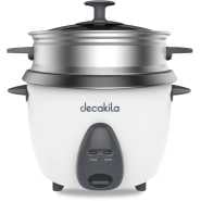 Decakila 0.6L Rice Cooker w/ Steam Basket, KEER020W. Inner pot with non stick coating With 1pcs spoon With 1pcs measuring cup Key Features: Decakila 0.6L Rice Cooker w/ Steam Basket, KEER020W. Inner pot with non stick coating With 1pcs spoon With 1pcs measuring cup