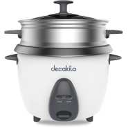 Decakila 1.8 L Rice Cooker, KEER037W With 1pcs measuring cup With 1pcs plastic steaming basket Split power cord Key Features: Decakila 1.8 L Rice Cooker, KEER037W With 1pcs measuring cup With 1pcs plastic steaming basket Split power cord