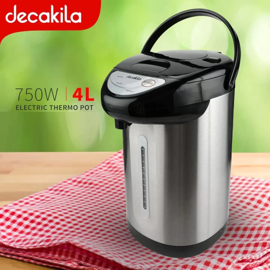 Decakila 4 L, 750 Watts, Electric thermo pot, KEKT029B. Elevate your hot water experience with the Decakila Electrical Thermo KEKT029B. Boasting a generous 4-liter capacity and 750W of power, this electric thermo ensures you have hot water at your fingertips. The automatic boil and keep warm functions provide continuous access to hot water throughout the day. Choose from three dispensing options: electric pump, manual pump, and cup touch for versatile use. The thermo features dry heating protection and a safety lock on the manual pump for enhanced safety. Keep track of water levels with the visible water mark. Upgrade to Decakila for seamless convenience and precision engineering. Upgrade your hot water game with the Decakila Electrical Thermo KEKT029B . This 4-liter electric thermo delivers a powerful 750W performance with automatic boil and keep warm functions. Choose your preferred dispensing method among electric pump, manual pump, and cup touch for ultimate convenience. Safety features include dry heating protection and a manual pump lock. The visible water mark ensures you never run out. Elevate your hot water experience with Decakila’s precision engineering. List of Features : Generous 4-liter capacity Powerful 750W performance Automatic boil and keep warm functions Three dispensing options: electric pump, manual pump, and cup touch Dry heating protection for enhanced safety Safety lock on the manual pump Visible watermark for easy monitoring Key Features: Decakila 4 L, 750 Watts, Electric thermo pot, KEKT029B. 3 ways of dispense: (1) electric pump (2) manual pump (3) cup touch Dry heating protection With a Safety lock on the manual pump Generous 4-liter capacity Powerful 750W performance Automatic boil and keep warm functions Three dispensing options: electric pump, manual pump, and cup touch Dry heating protection for enhanced safety Safety lock on the manual pump Visible water mark for easy monitoring