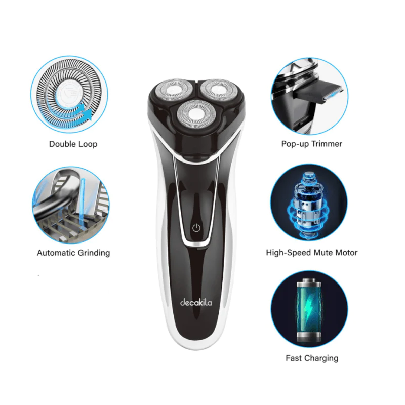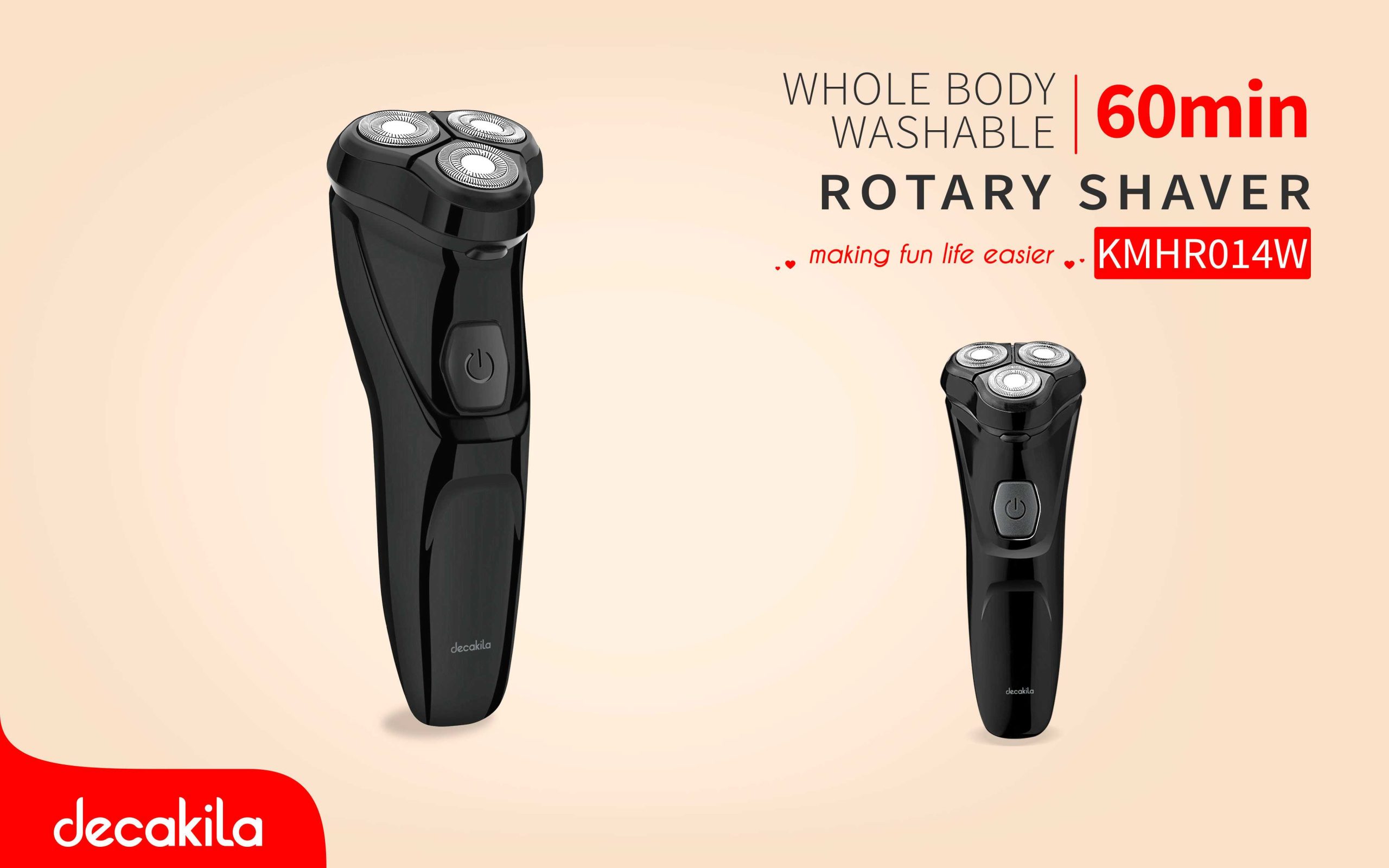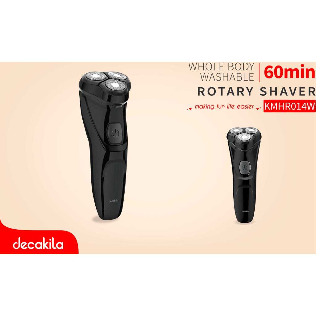 Decakila Rotary Body Shaver KMHR014W – Black 600mAh lithium battery 1.5 hours charging time 60 minutes working time φ21mm diameter cutter 3D floating shaving head LED digital display Independent triple floating head system Wet and dry use IPX6 waterproof Triple shaving heads Travel lock Touch switch 1m usb cable 1pcs clean brush Size:135.5*38*57.7mm Packed by color box Key Features: Decakila Rotary Body Shaver KMHR014W – Black 600mAh lithium battery 1.5 hours charging time 60 minutes working time φ21mm diameter cutter 3D floating shaving head LED digital display Independent triple floating head system Wet and dry use IPX6 waterproof Triple shaving heads Travel lock Touch switch 1m usb cable 1pcs clean brush Size:135.5*38*57.7mm Packed by color box