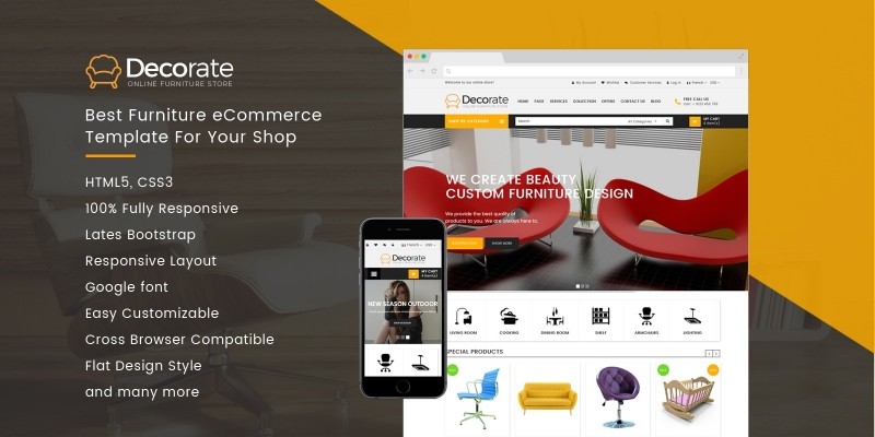 Decorate - Furniture eCommerce Shop. Furniture & Interior Website Templates is a modern, clean and professional HTML 5 & CSS 3 Template