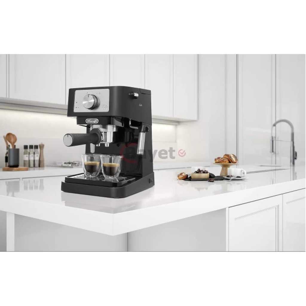 Delonghi EC260 Barista Pump Espresso & Cappucino Coffe Machine. Unleash your inner barista and create all your coffee shop favourites at home 15-bar pump espresso maker with a strainless steel boiler for perfect coffee extraction Steam arm to create frothy cappuccinos and smooth lattes Filter holder for ground coffee, 1 or 2 cups plus E.S.E pods. Removable 1lt water tank and removable drip tray for glasses upto 110mm. Combination of matt and glossy black finish with a stainless steel control panel and stainless steel drip tray. Anti drip system. Key Features: Delonghi EC260 Barista Pump Espresso & Cappucino Coffe Machine. Unleash your inner barista and create all your coffee shop favourites at home 15-bar pump espresso maker with a strainless steel boiler for perfect coffee extraction Steam arm to create frothy cappuccinos and smooth lattes Filter holder for ground coffee, 1 or 2 cups plus E.S.E pods. Removable 1lt water tank and removable drip tray for glasses upto 110mm. Combination of matt and glossy black finish with a stainless steel control panel and stainless steel drip tray. Anti drip system.
