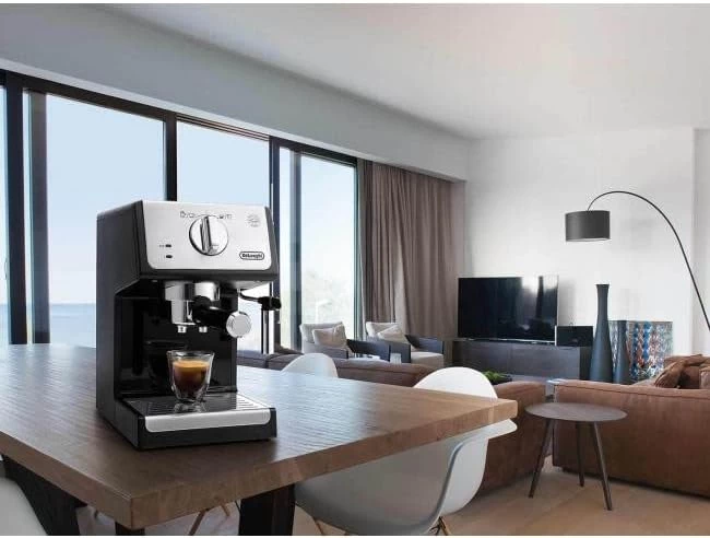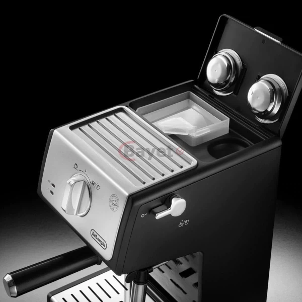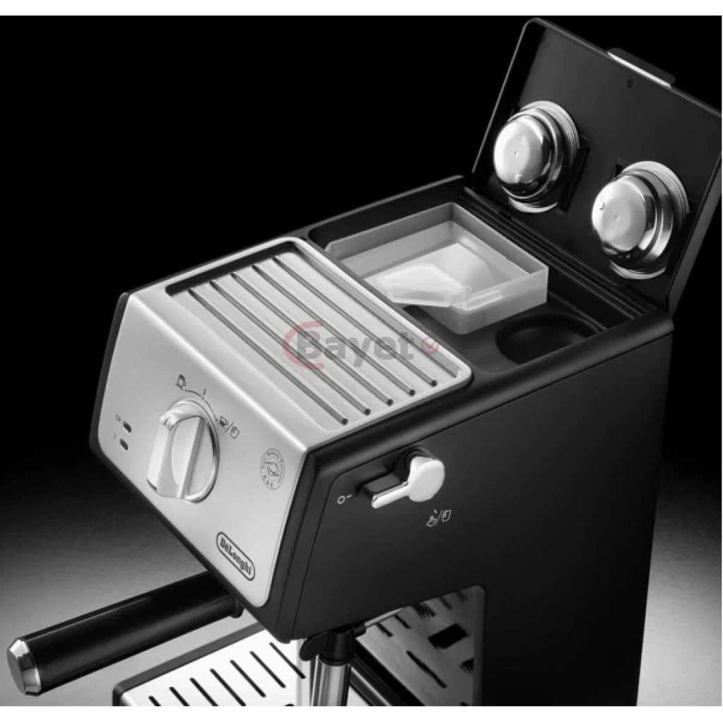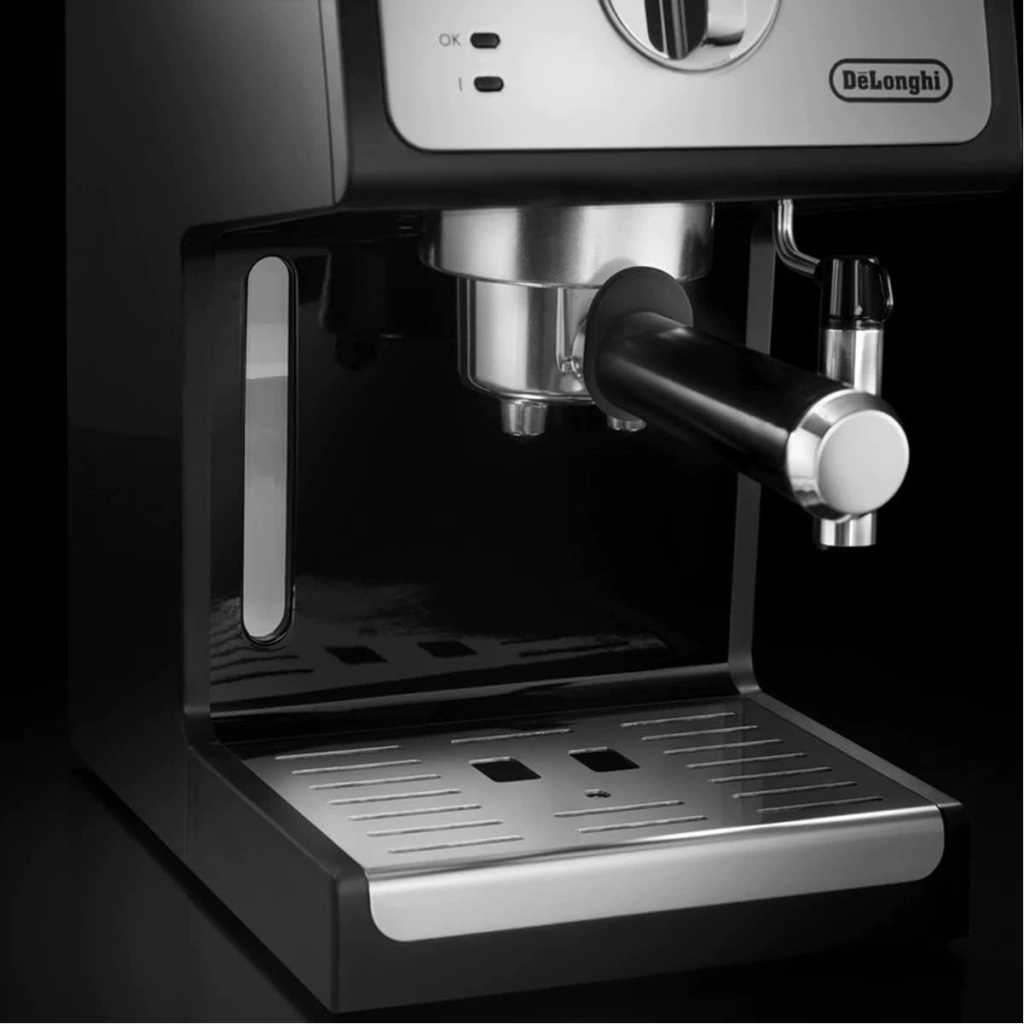 DeLonghi Ecp33.21|Pump Espresso Coffee Machine. Sophisticated black ABS paint finishing Advanced milk frother for maximum results Ability to use E.S.E pods as an alternative to ground coffee. 1 litre water tank. Made by Delonghi Adjustable Cappuccino System-With the adjustable milk frother you can easily froth milk for a perfect Cappuccino or steam milk up for a great Caffelatte. Thermoblock technology. The unique Thermoblock technology keeps the water at the exact temperature required to brew a perfect Espresso. 15 bar pressure-The 15 bar pressure creates an espresso with a rich aroma and a nut-coloured cream on top. Double drip tray- The removable drip tray allows you to use mugs and glasses up to 12 cm tall. Wattage: 1000W Capacity-10 cups 1 Glass Carafe 1 Permanent Filter Water level window on both sides of the machine Keep warm plate to keep the coffee warm Anti-drip system Eco function automatic shut-off after 40 minutes On/standby button with led Colour: Black Material: Plastic & Metal Key Features: DeLonghi Ecp33.21|Pump Espresso Coffee Machine. Sophisticated black ABS paint finishing Advanced milk frother for maximum results Ability to use E.S.E pods as an alternative to ground coffee. 1 litre water tank. Made by Delonghi Adjustable Cappuccino System-With the adjustable milk frother you can easily froth milk for a perfect Cappuccino or steam milk up for a great Caffelatte. Thermoblock technology. The unique Thermoblock technology keeps the water at the exact temperature required to brew a perfect Espresso. 15 bar pressure-The 15 bar pressure creates an espresso with a rich aroma and a nut-coloured cream on top. Double drip tray- The removable drip tray allows you to use mugs and glasses up to 12 cm tall.