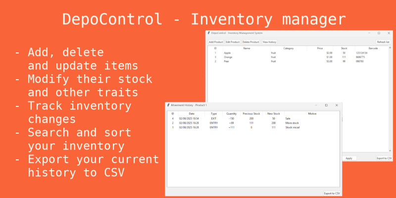 DepoControl - Inventory Management System. A desktop application built with Python and Tkinter for store inventory management