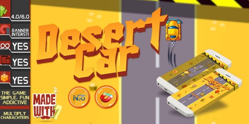 Desert Car - Buildbox Game Template. This file includes : AdMob ( Banner + Interstitial ) + Buildbox file + All Assets ( HD Images + Sounds ) .
