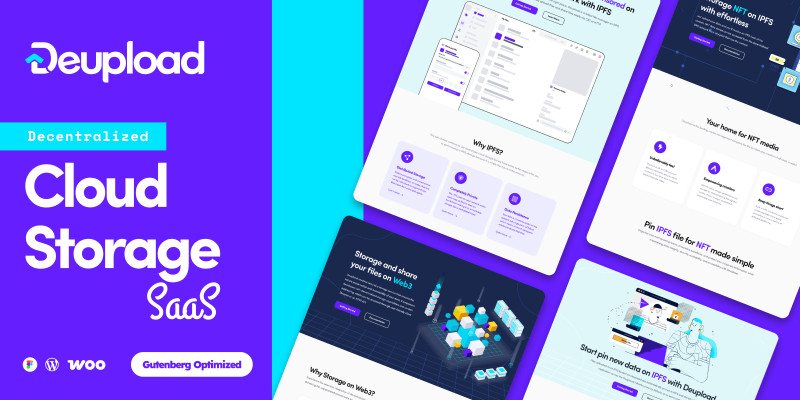 Deupload - Cloud Storage SaaS WordPress Theme. Ready landing page designed for your SaaS cloud storage application