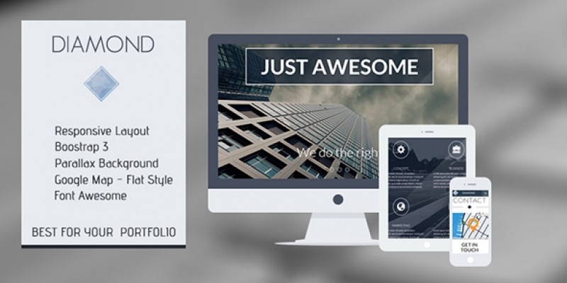 Diamond - OnePage Responsive HTML Template. Responsive HTML template to showcase your portfolio.