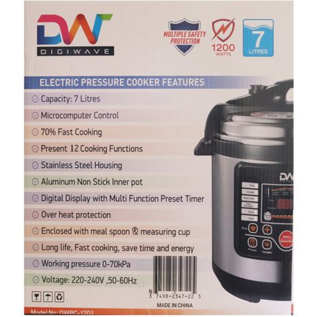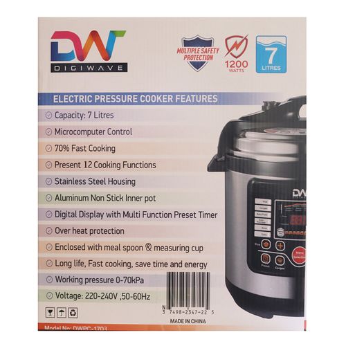 Key Features: Brand: DIgiwave Capacity: 7 Liter Watts: 1200W Easy to use Durable