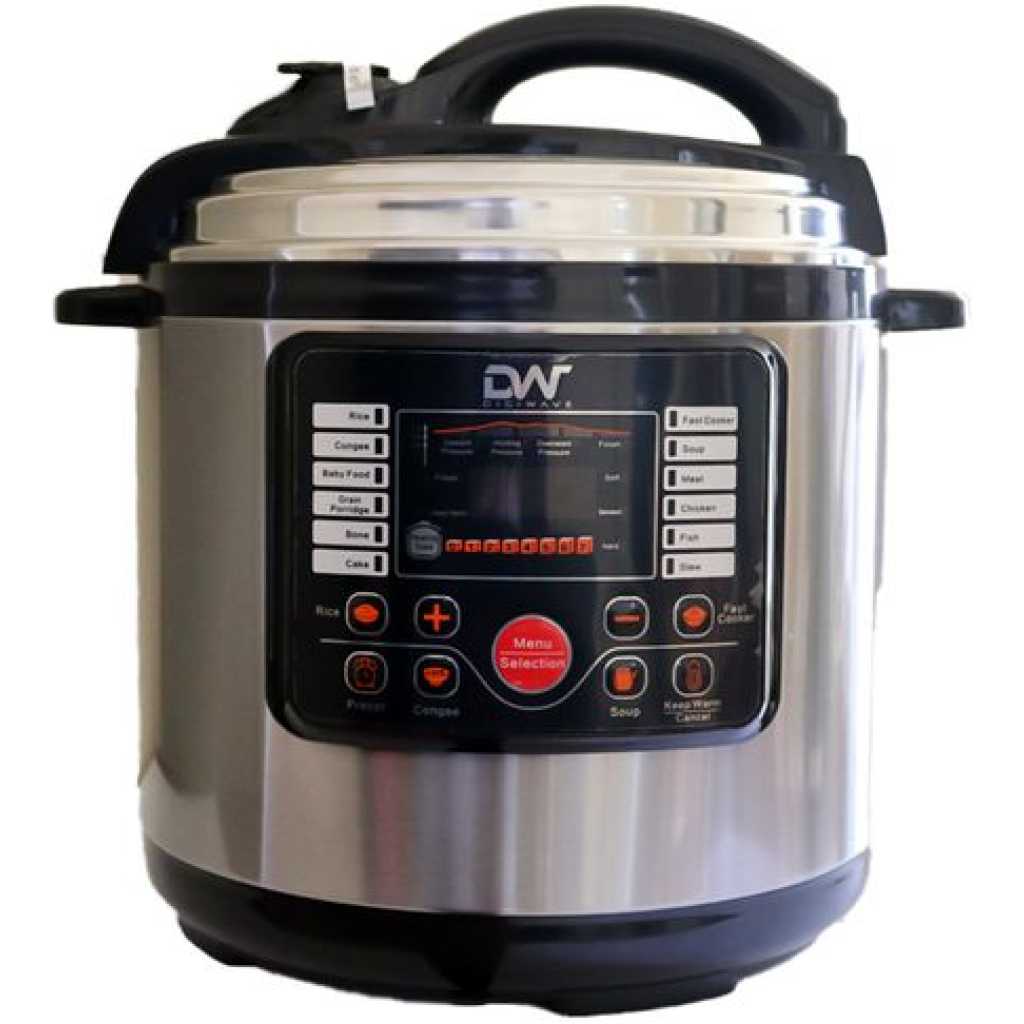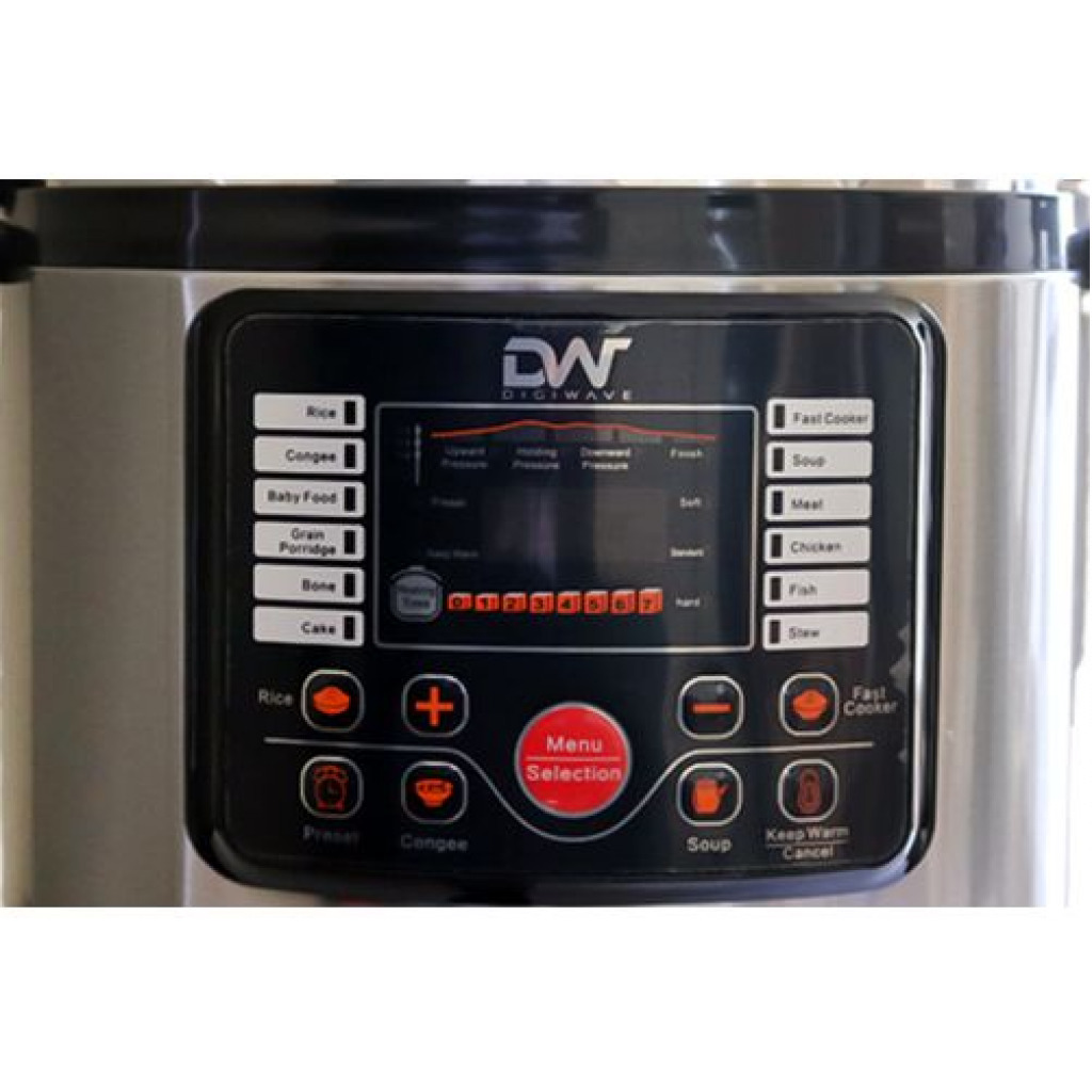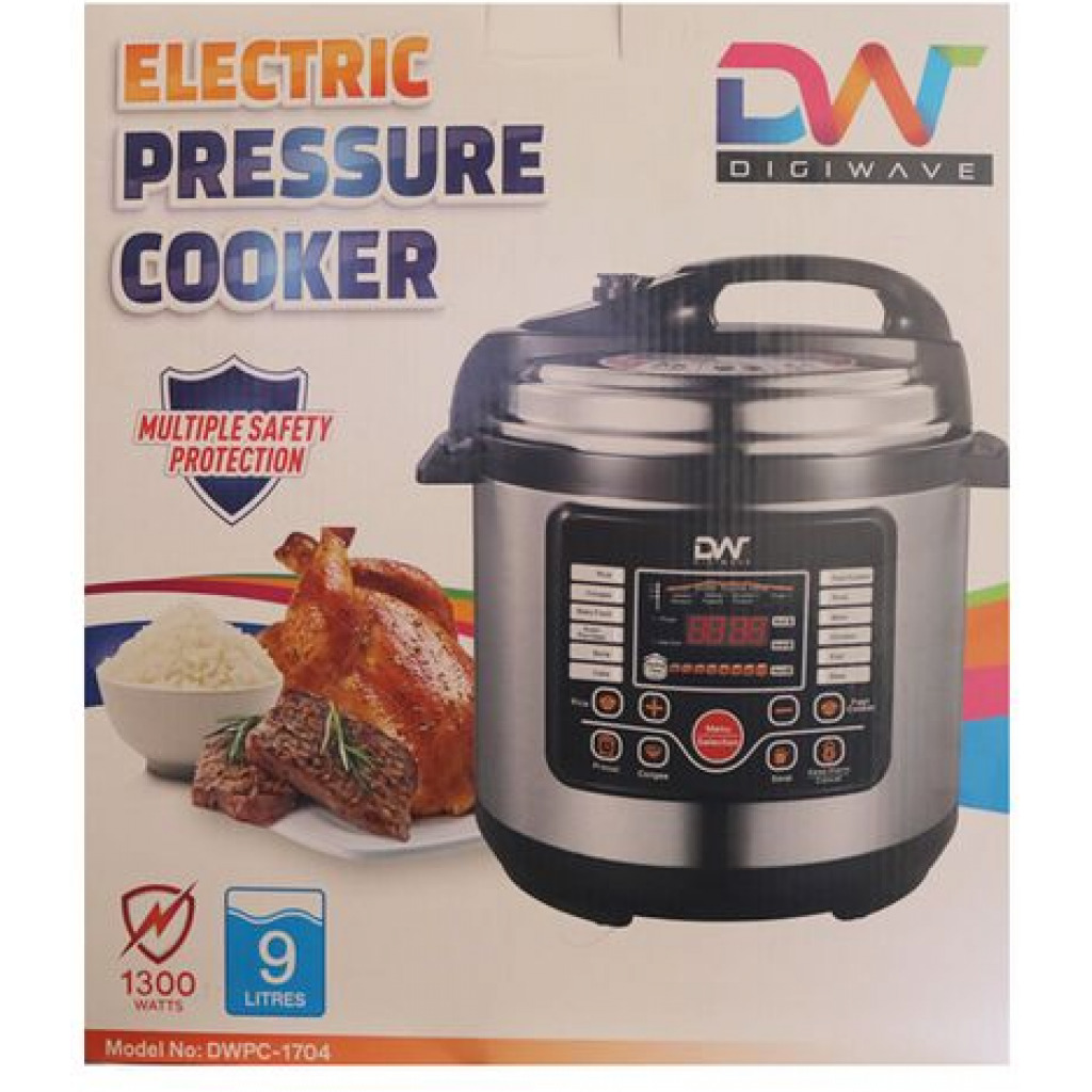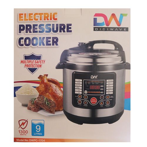 Prepare healthy meals for the whole family with the 9.0l electric pressure cooker. the large Nine litre pot is ideal for cooking for large families or dinner parties. for healthier meals without any added fats or oils, the cooker has a non-stick pot and uses a super-heated pressurized steam system to lock in important vitamins and minerals. dishes cook up to 90% faster than with conventional cookware, meaning meals in minutes rather than hours. for example beef ribs which may take around an hour and half in a conventional oven can be cooked in just 20 minutes. there’s no complicated menus to navigate either – most of the functions can be accessed by the simple touch of a button. features material: steel/plastic capacity: 6 liters super non-sticky coating inner pot full sealed structure pressure release device overheat safety protection Key Features: Brand: DIgiwave Capacity: 9 Liter Watts: 1300W Easy to use Durable