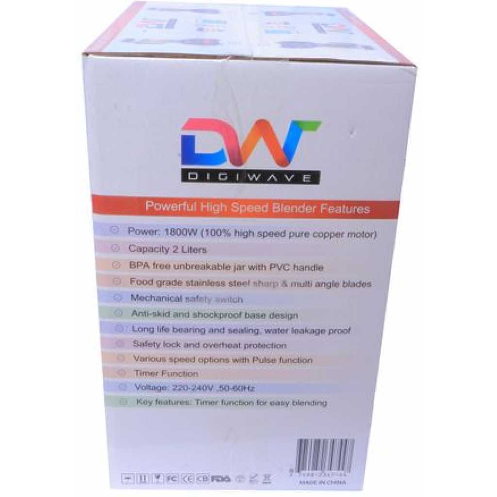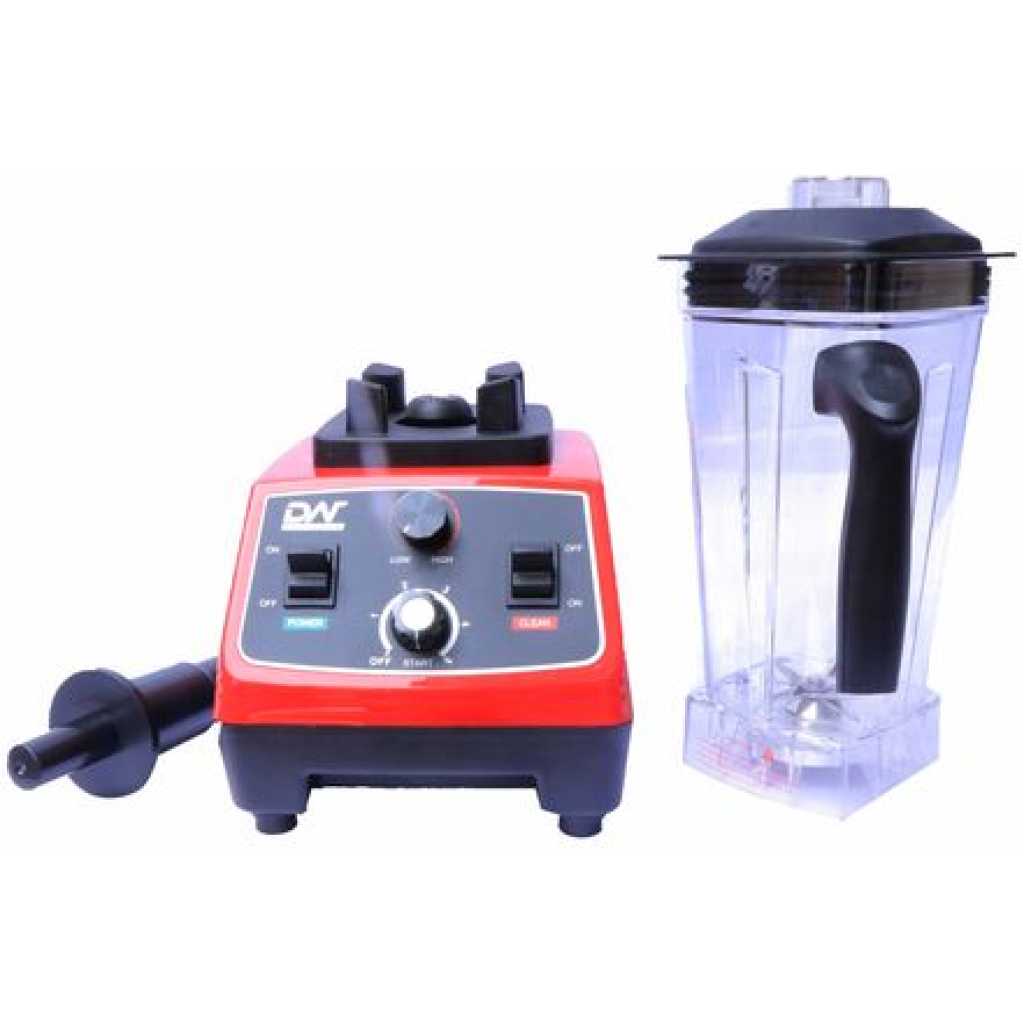 Digiwave DWBL – 1111T 2.0L High-Speed Commercial Blender – Red. It’s easy. Just add the liquid, followed by the other ingredients and blend. , you’re sure to find the right setting for a creamy milkshake or frozen daiquiri. It can also whip up sauces, dressings and purees. The patented Wave-Action system works to continuously pull mixture down into the blades for smooth results. This commercial blender is remarkable for its efficiency at shredding and extracting juice from appropriate contents placed in it. It has a powerful motor that is optimized to consume as little electricity but still provides high rotor speedsCommercial blenders are designed to handle high demand settings with motors strong enough to produce professional restaurant quality results. You can use these blenders in any setting from your home to the restaurant to bar for difficult-to-blend ingredients to make the perfect consistency smoothie, frozen cocktail, sauce, or purée. Engineered for heavy-duty use, these blenders are manufactured with more powerful motors and durable parts to last longer than most typical home blenders. Differences between Commercial and Residential Blenders Red Key Features: Digiwave DWBL – 1111T 2.0L High-Speed Commercial Blender – Red. Power: 1800W. BPA Free Un Breakable Jar With Handle. Capacity 2Litres. Food Grade-Stainless Steel Sharp and Multi Angle Blade. Long-Life Bearing and Sealing.