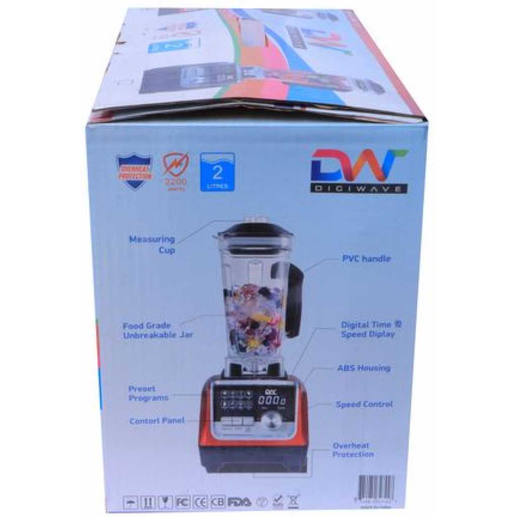 Key Features: Digiwave DWBL-1112 2L Digital Commercial Blender With Timer – Maroon. Power: 1800W Capacity 2Litres Digital Display Timer with preset options Food Grade Stainless Steel Sharp Multi-Angle Blade Long-Life Bearing and Sealing.