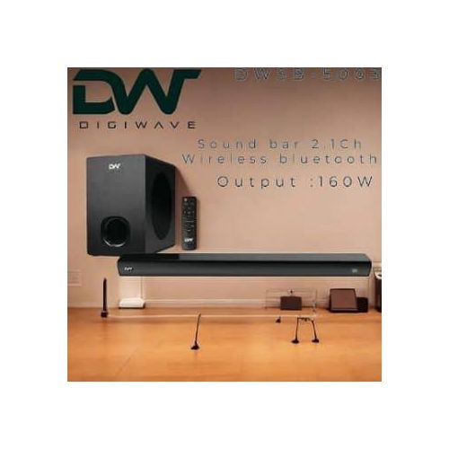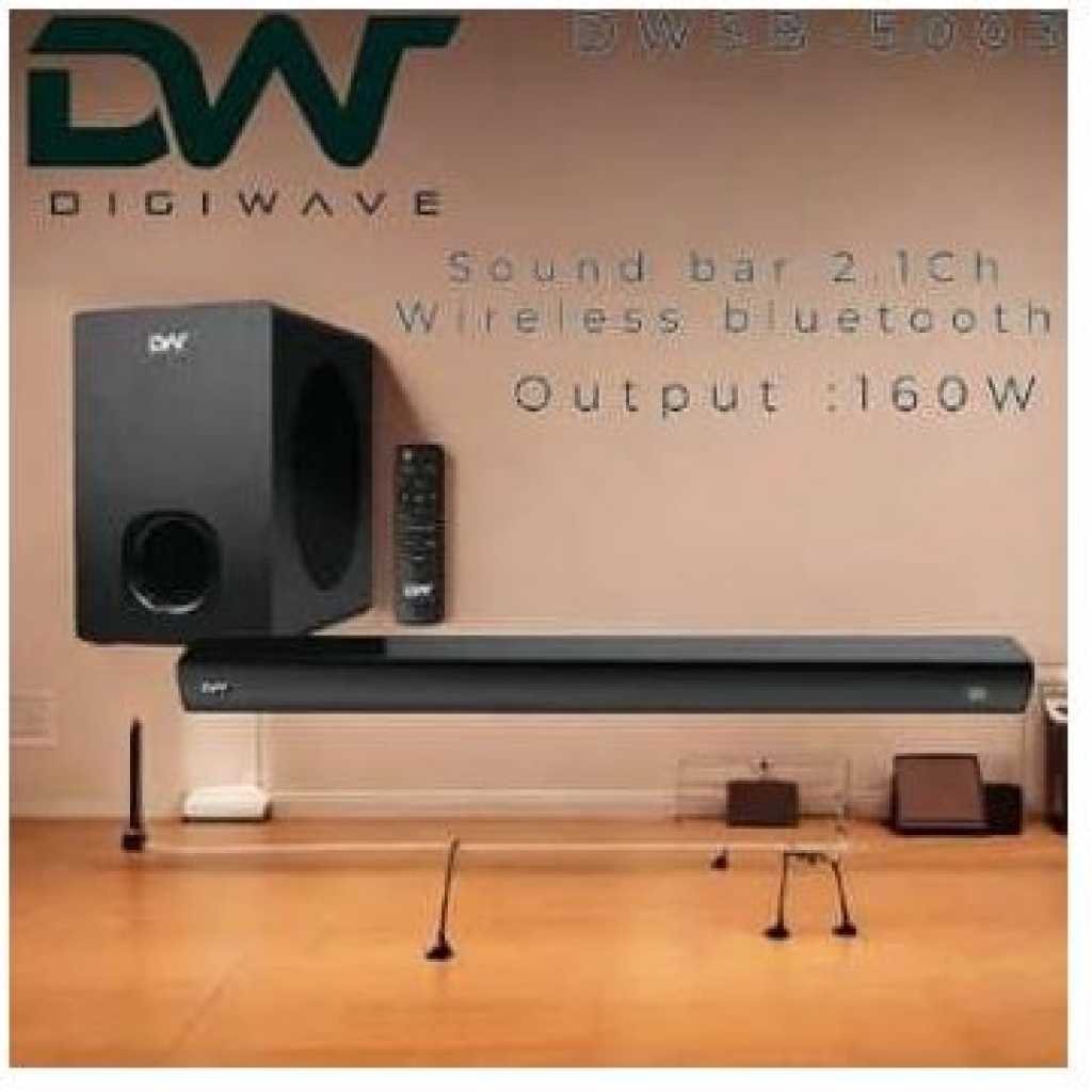 Digiwave DWSB5003 2.1 Channel Wireless Sound Bar With Bluetooth 160W With Wired Subwoofer & 1 Satellite Speakers, Remote 3 EQ Presets With Deep Bass Bluetooth Optical/USB Input Wide Compatibility Soun