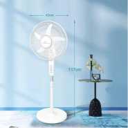 16″ Stand Fan with Remote Control– 3 Mode/Speed, 5 Leaf Blade Wide Oscillation, Adjustable Height & Tilt Setting With Led Display – 7.5 Hours Timer 3 QUIET, ENERGY-EFFICIENT & 3 SPEED – Allows this free-standing pedestal to provide a cooling breeze around the home or home office. Ideal for the bedroom, living room, or near your desk. Low, medium and high speed make this well suited around the whole house. ADJUSTABLE HEIGHT & TILT-BACK HEAD – Gives you the ability to direct the cooling air right where you need it. The fan’s stand or pedestal adjusts up or down changing the fan’s height while the tilt-back head lets you aim the air towards the floor, ceiling, or anywhere in between. WIDESPREAD OSCILLATION – This fan head moves from side to side to blow air throughout the area. Oscillation allows for the fan to provide ventilation for a wide area. BUILT-IN TIMER – The ergonomically designed you can control fan speed, timer, and power automatically easily. While the built-in timer is programmable to shut the fan off automatically after 7.5 hours.