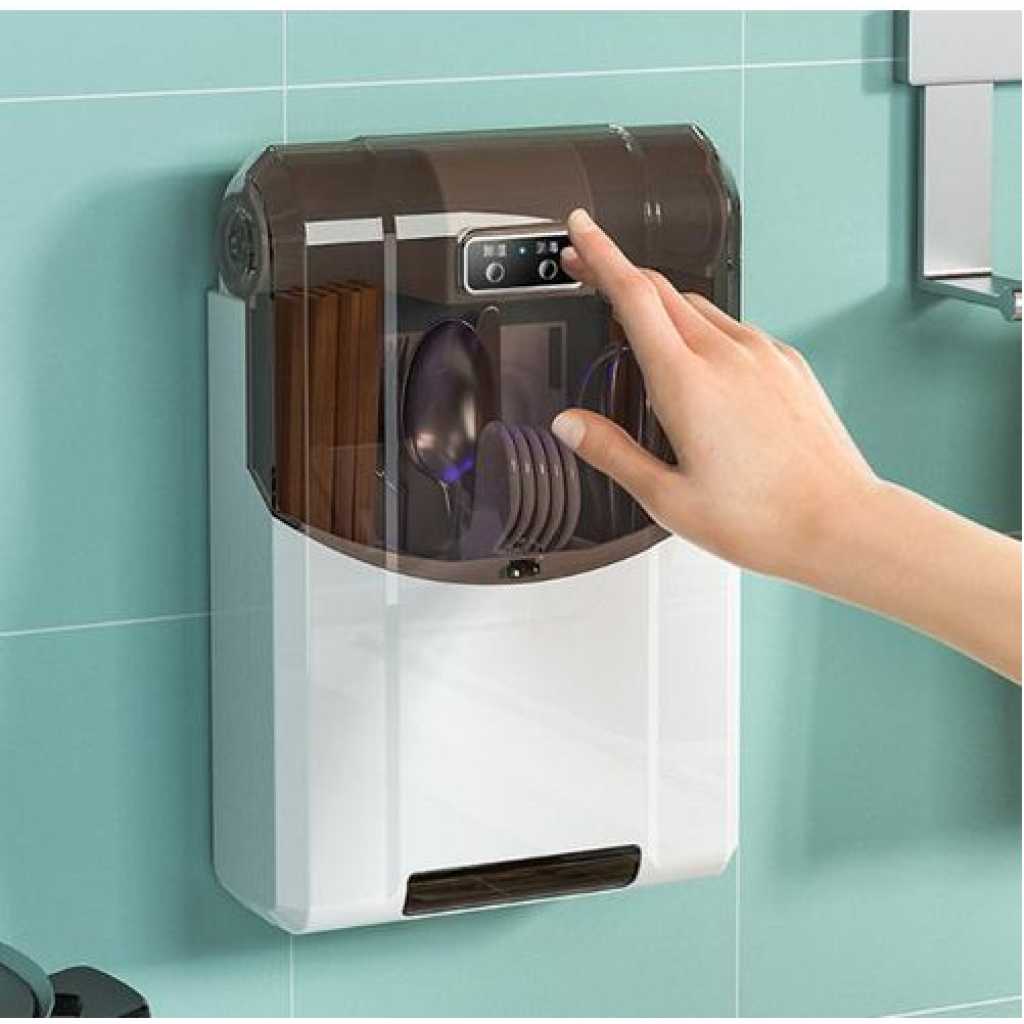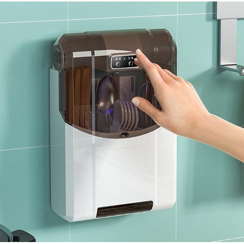 Disinfecting Chopsticks Tube Wall Mounted Cutlery Organizer with Cover Dust-Proof Air Dryer Electric Smart Utensil Holder Caddy-Multicolor