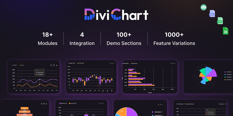 Divi Chart Kit. Divi Chart Kit is a plugin that integrates with the Divi Builder, providing a suite of modules to create diverse charts and graphs