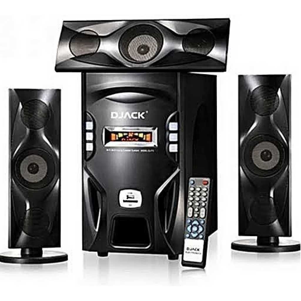 Key Features: Brand: Djack Play your music directly from your mobile devices like phone via Bluetooth. This is a fantastic deal for all lovers of quality sounds 3.1 X-Bass Hi Fi Multimedia Speakers System MP3, FM, DVD, VCD, PS2, TUNER, SD, USB, XBOX Bluetooth speakers Remote control Color: Black Power output: 60 watts Frequency response: 38Hz-20KHz Separation:>45dB On/off power switch splendor