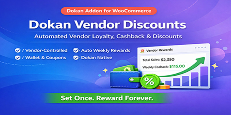 Dokan Vendor Discounts - WordPress. Automate vendor discounts, loyalty rewards, and cashback for Dokan WooCommerce marketplaces with weekly rule-based automation.