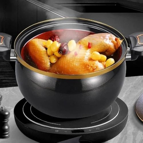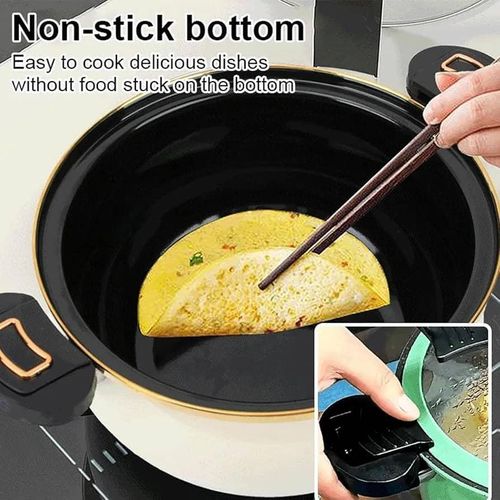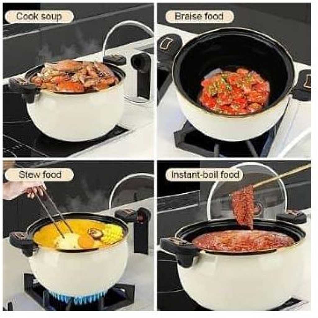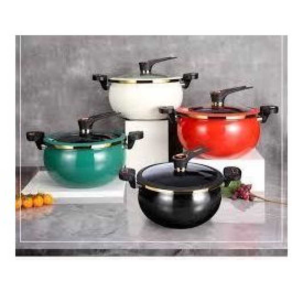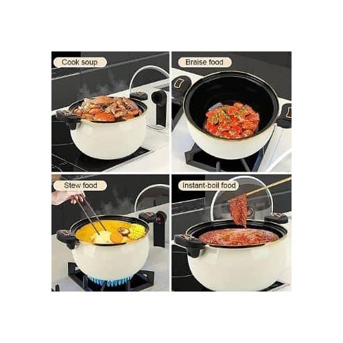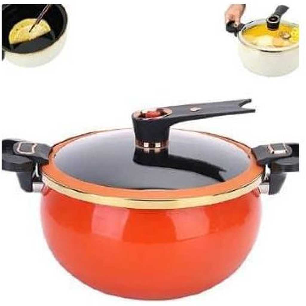 Key Features: [Enameled Micro Pressure Cooker with Double Handle, 7L]: Cook food faster and safer with a micro pressure cooker. This allows you to prepare a pot of soup in 20 minutes, saving 30-60% of cooking time compared to a normal pot. [Cook faster]: The pumpkin pot is made of fine iron material with fast and uniform heat conduction and micro pressure design. This cookware allows you to cook food faster and more deliciously. [Non-stick Coating]: Built-in Miniature Pressure Cooker Steam Boil Fry is coated with healthy medical stone, which is non-stick and smokeless. You don’t have to worry about food sticking to the pot. Also easy to clean. [Safe to Use]: The 10L enamel micro pressure cooker is equipped with a pressure relief valve and a locking lid to prevent accidents. The raised edge of the pot prevents the liquid from overflowing. The transparent lid makes the cooking status visible at a glance. [Multipurpose]: It can be used for stewing, frying, steaming and stewing. It is much more practical than other ordinary pots with single functions.